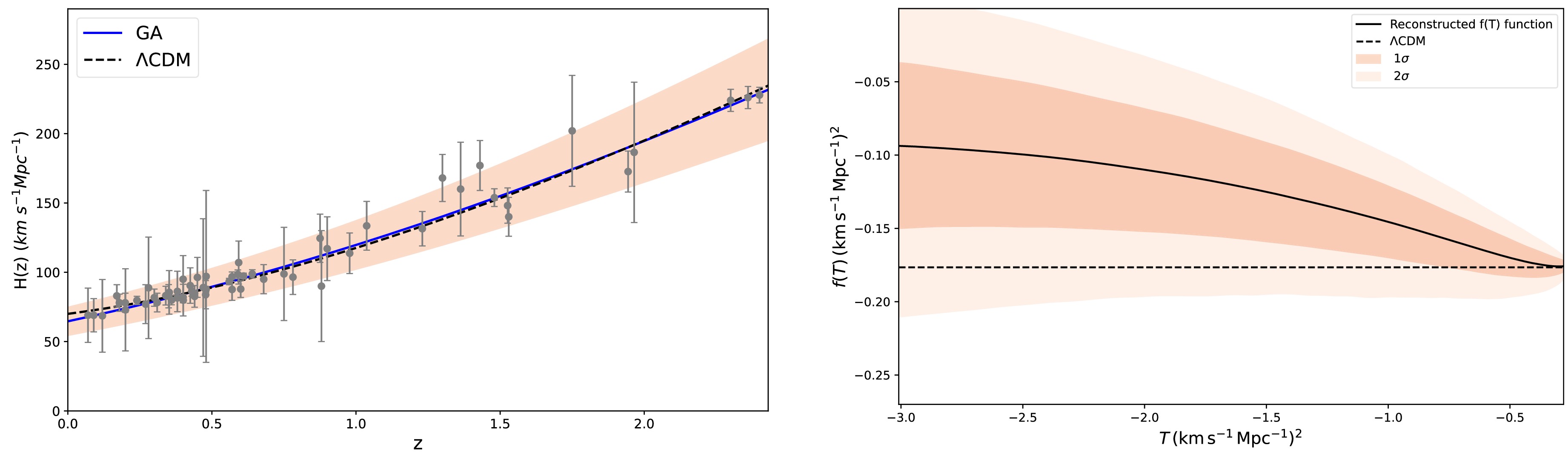 data derived from cosmic chronometers and the radial Baryon Acoustic Oscillation method, including the latest Dark Energy Spectroscopic Instrument (DESI) data, we reconstruct the Hubble rate, which is the basis parameter for reconstructing \begin{document}$f(T)$\end{document} ![]()