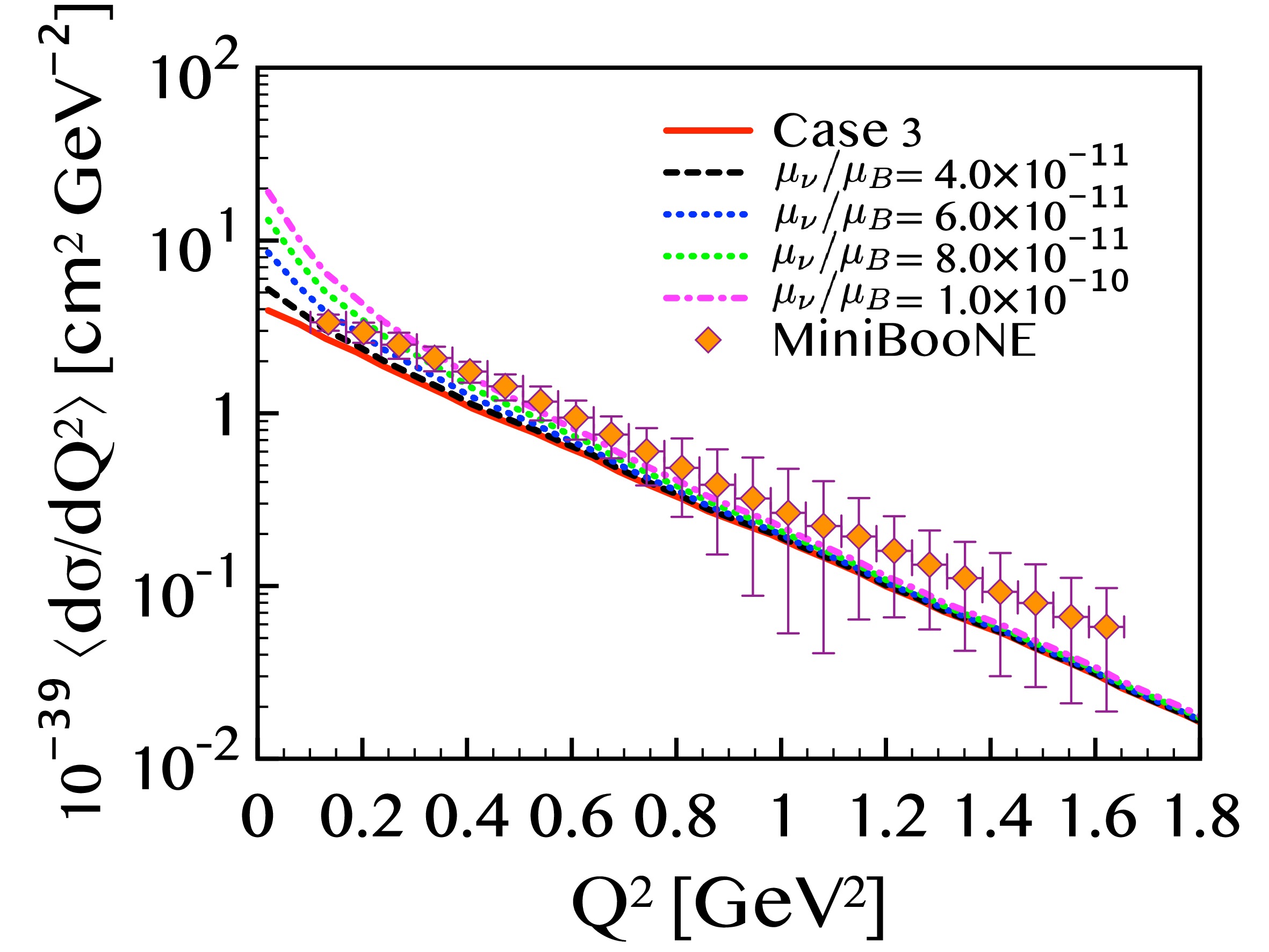 . To describe nuclear dynamics relativistically, we employ the quantum hadrodynamics model, which can reliably reproduce experimental results in this kinematic regime. In this study, we explore physics beyond the Standard Model by incorporating the neutrino’s magnetic and electric dipole form factors, as well as its charge radius, into the electroweak interaction framework within 12C. Specifically, we use experimentally derived values for the neutrino charge radius and magnetic moment at zero four-momentum transfer (\begin{document}$ Q^2 = 0 $\end{document} ![]()