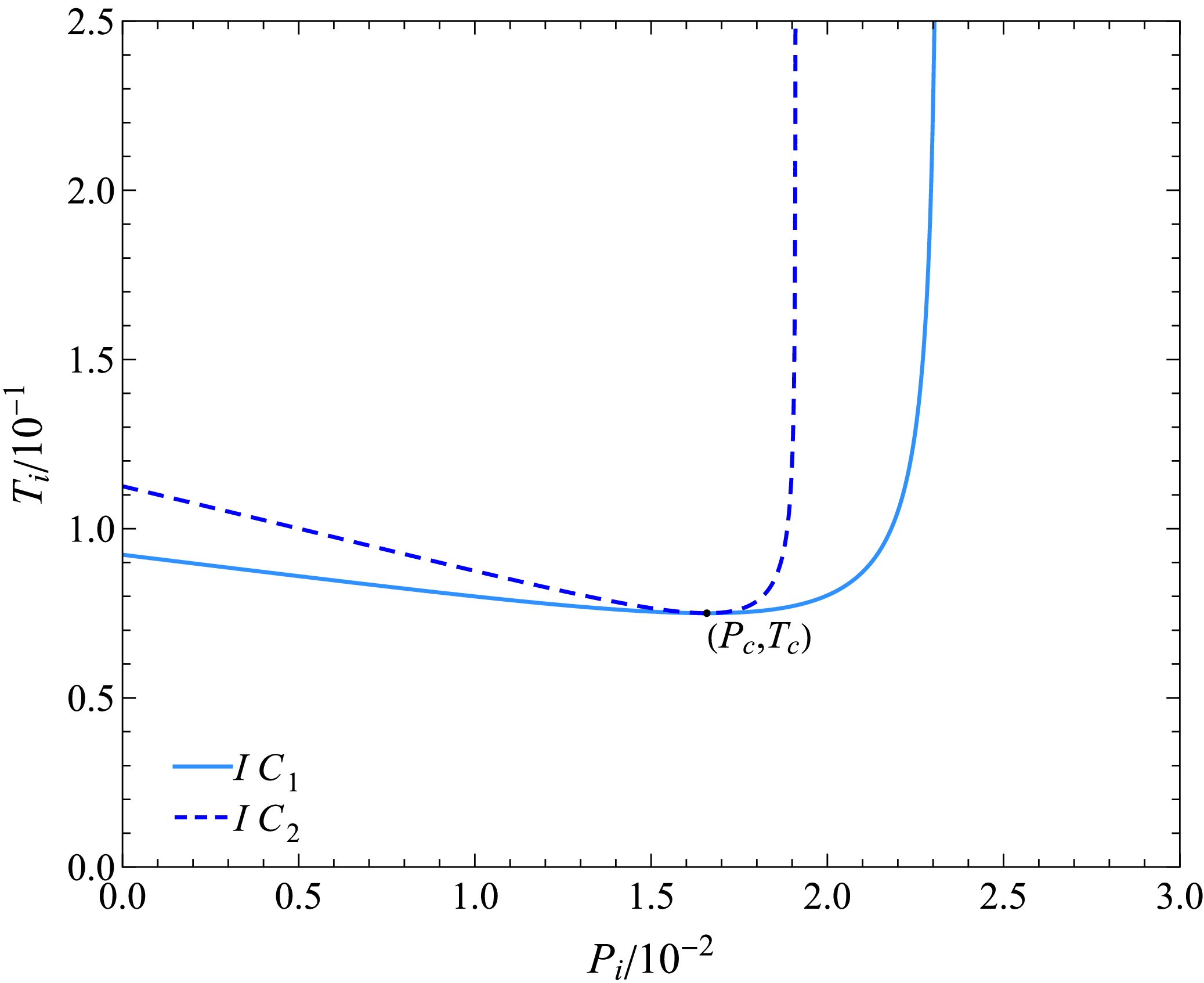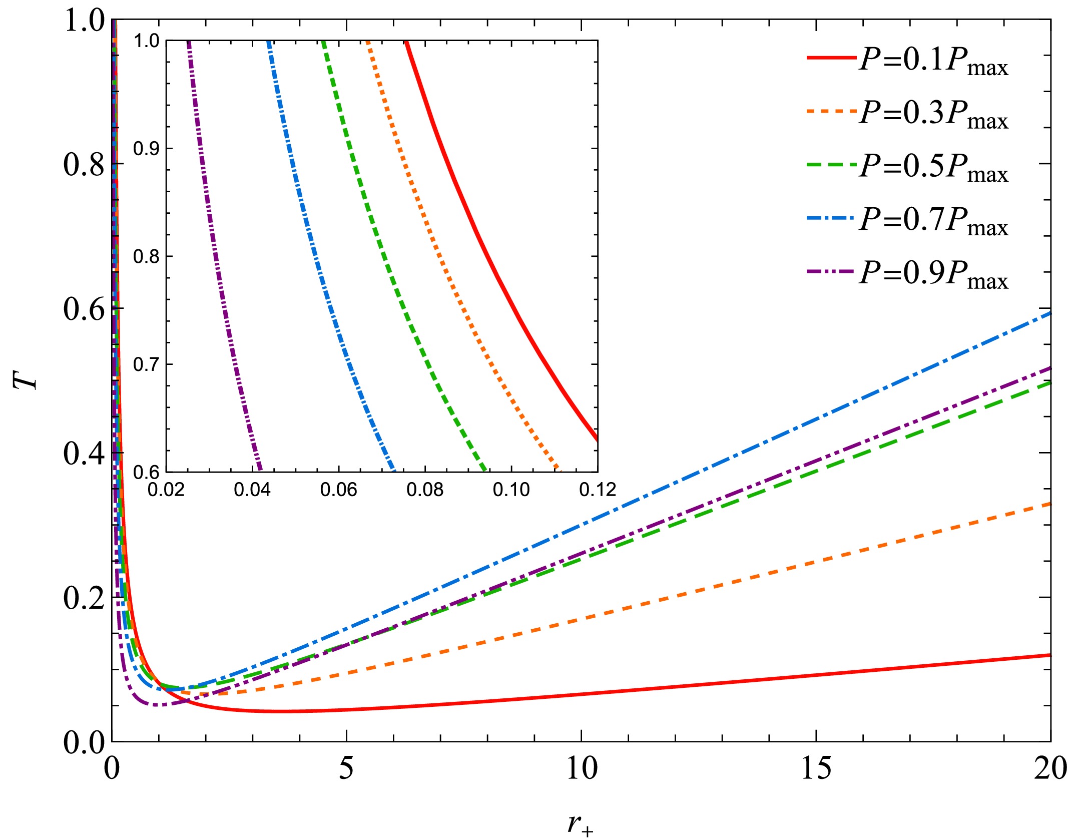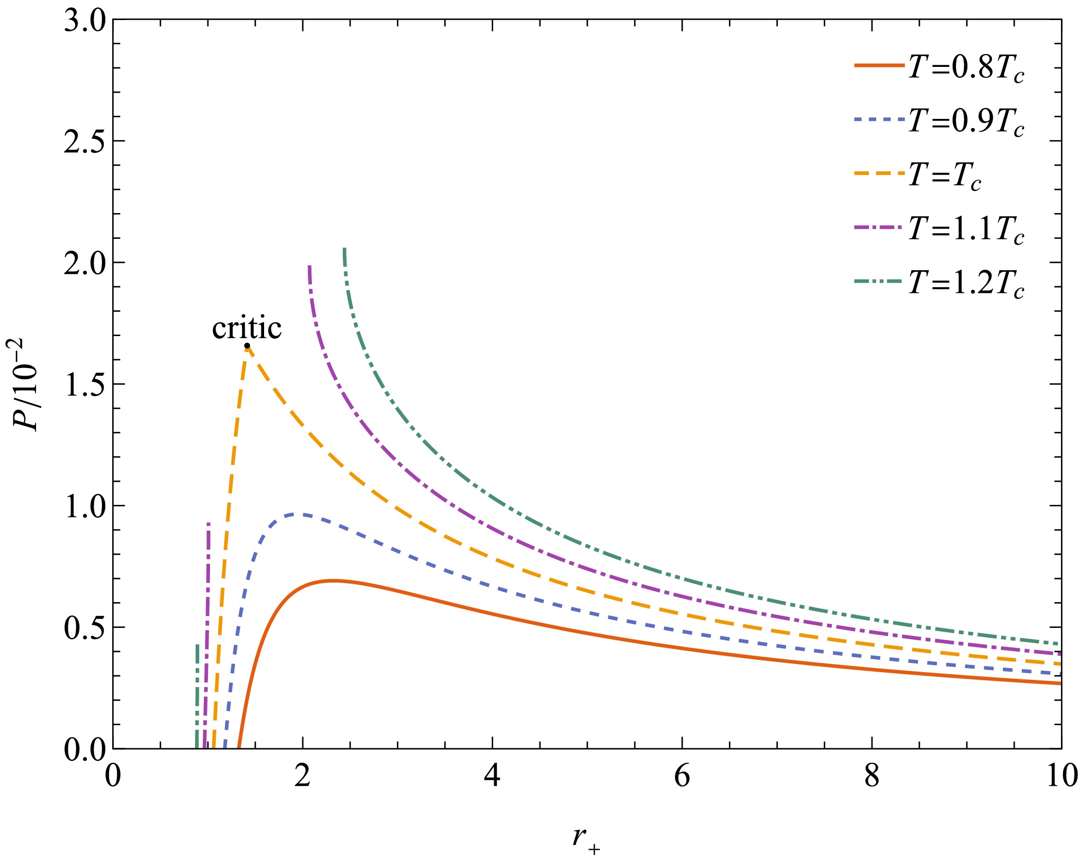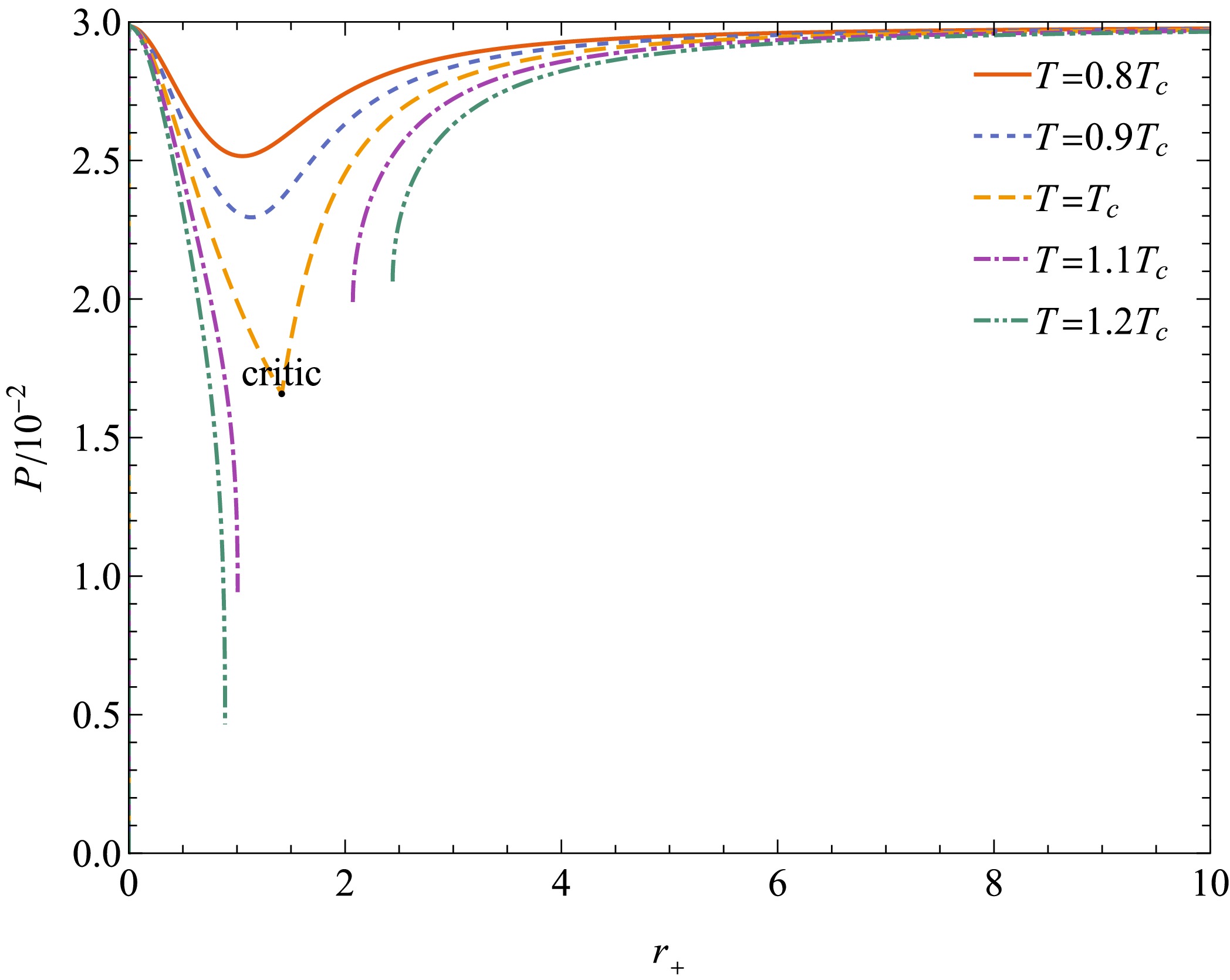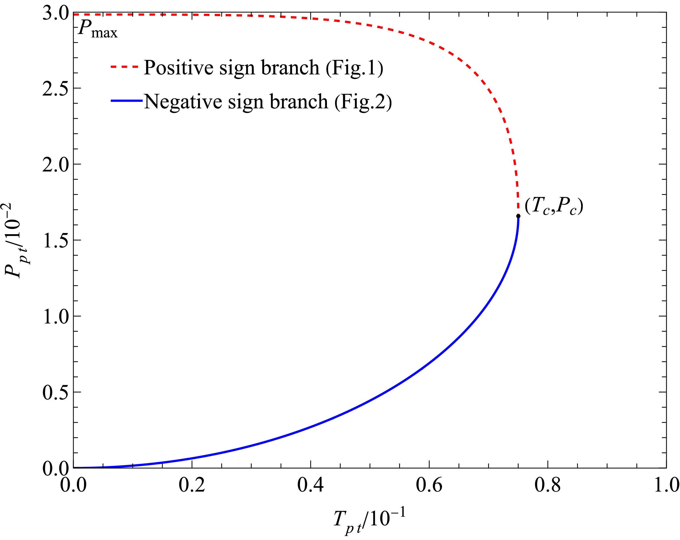 , with its phase transition pressure lower than the critical pressure; the phase transition pressure in the other branch is greater than the critical pressure. This study shows that the \begin{document}$ T-r_{+}$\end{document} ![]()