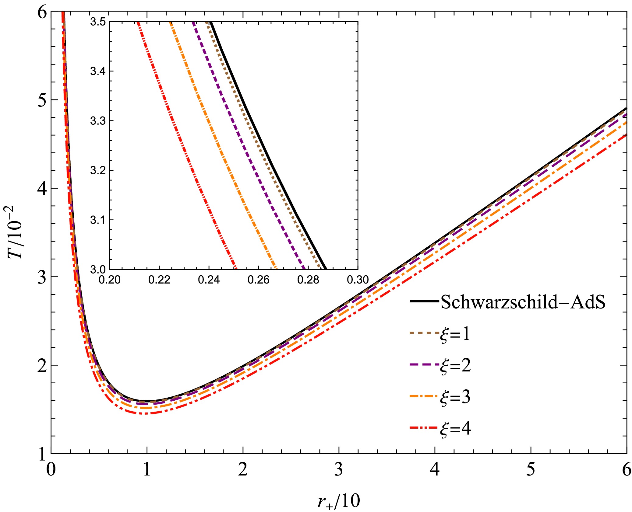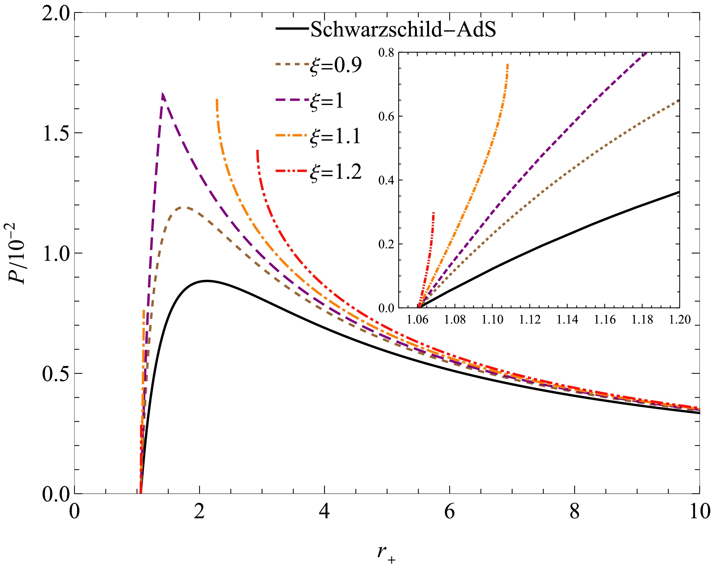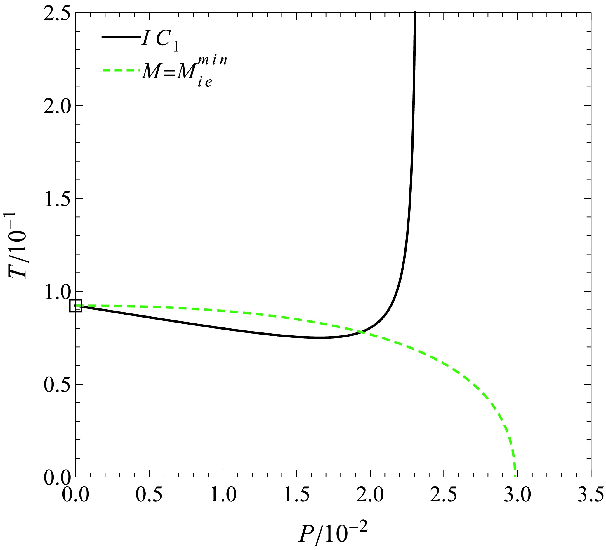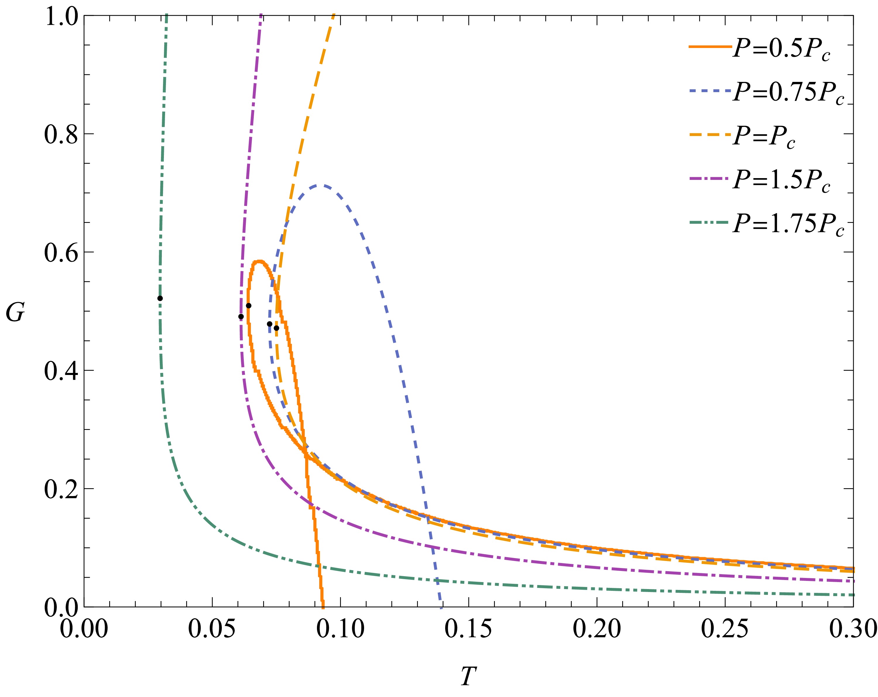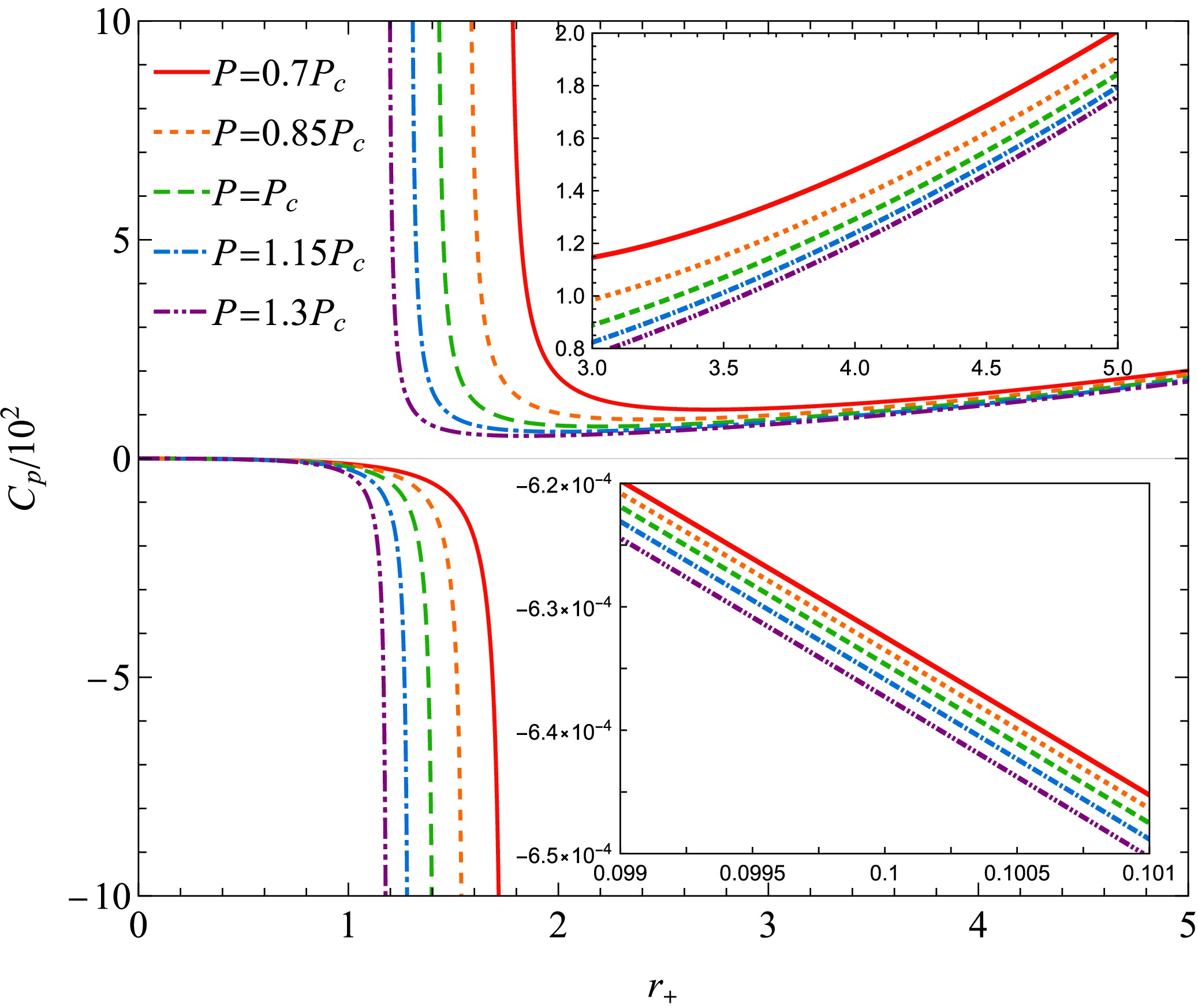 , with its phase transition pressure lower than the critical pressure; the phase transition pressure in the other branch is greater than the critical pressure. This study shows that the \begin{document}$ T-r_{+}$\end{document} ![]()