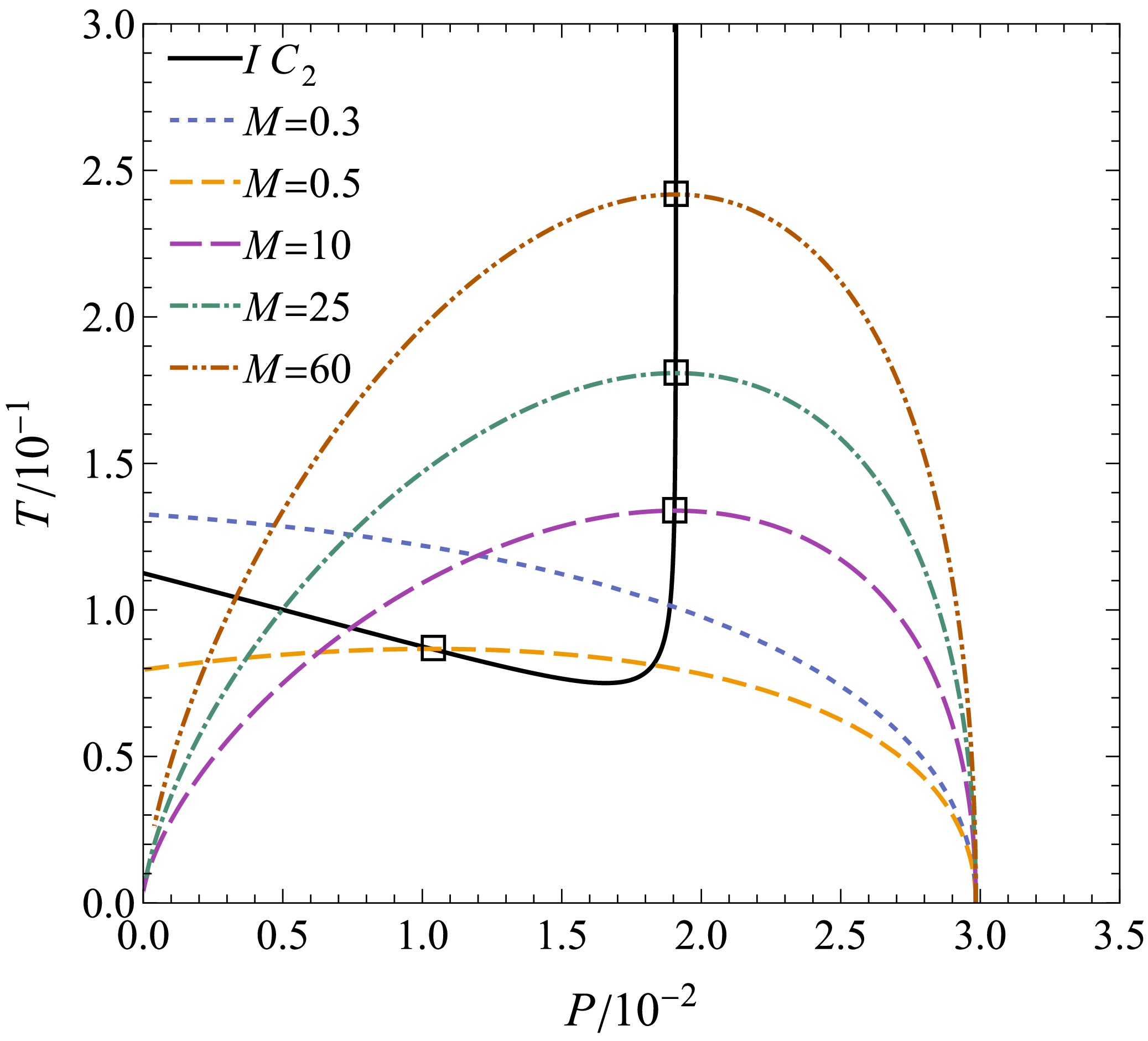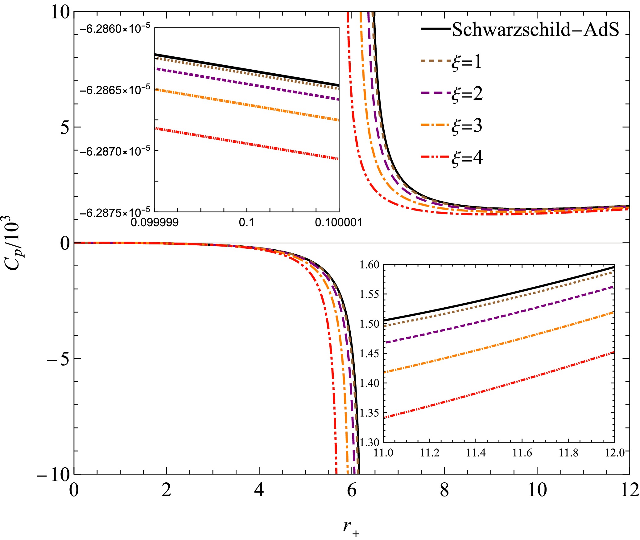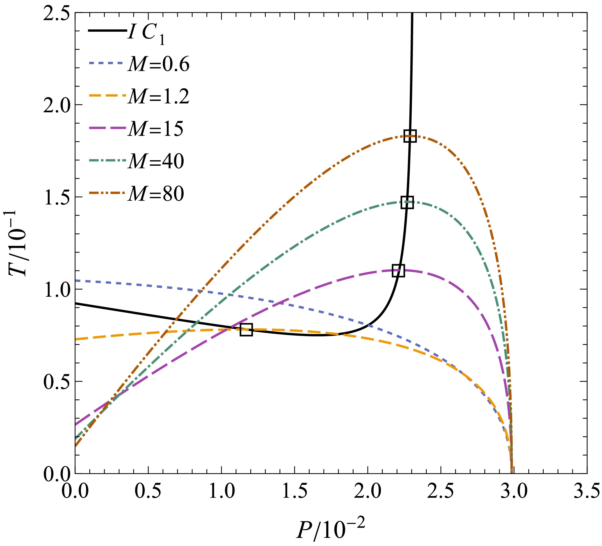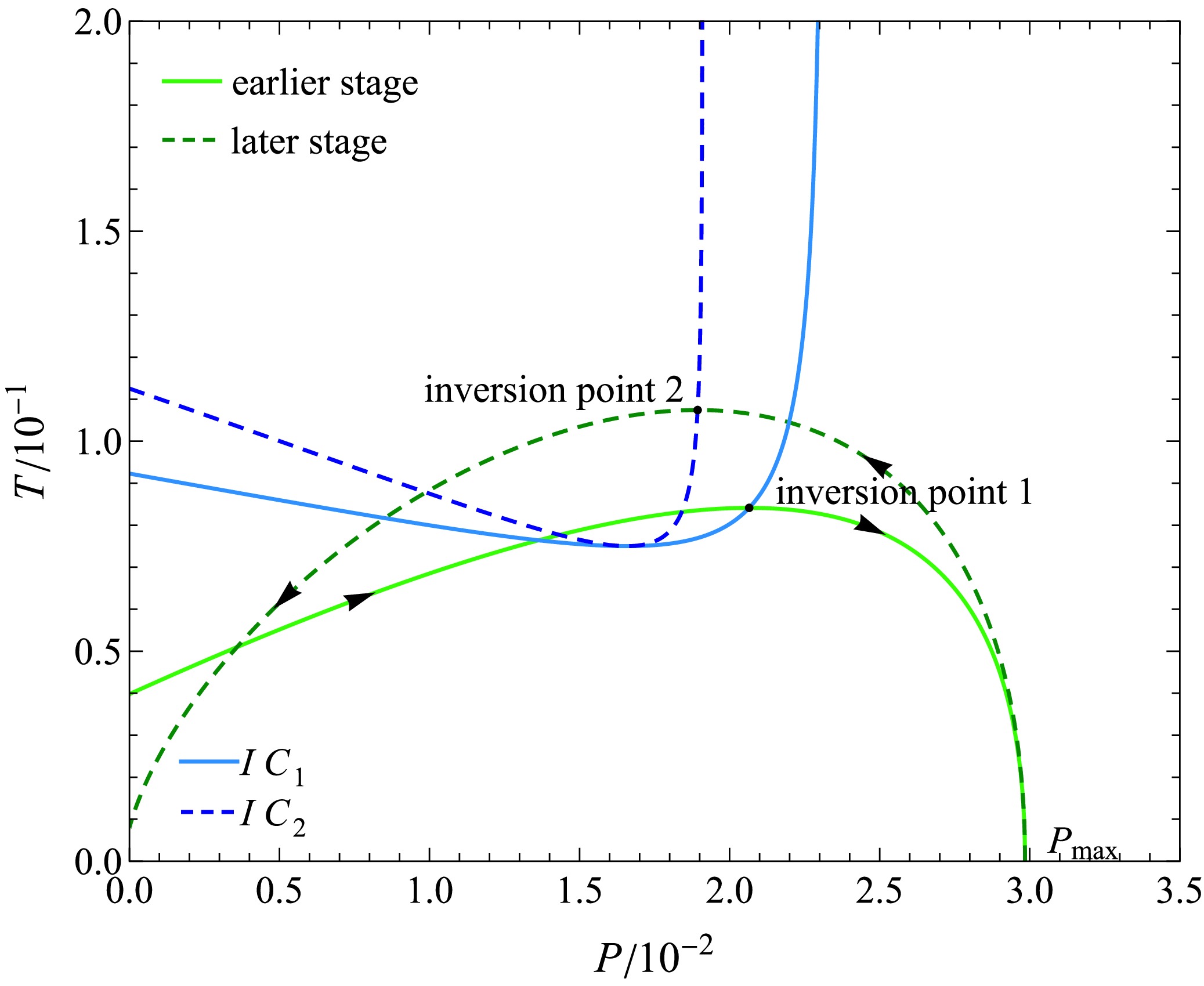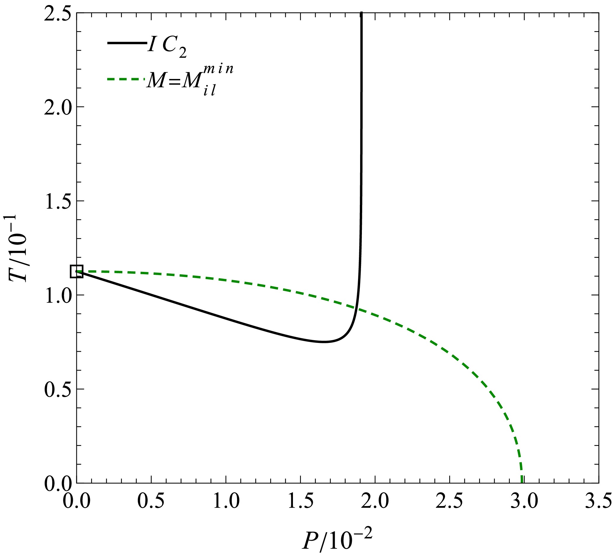 , with its phase transition pressure lower than the critical pressure; the phase transition pressure in the other branch is greater than the critical pressure. This study shows that the \begin{document}$ T-r_{+}$\end{document} ![]()