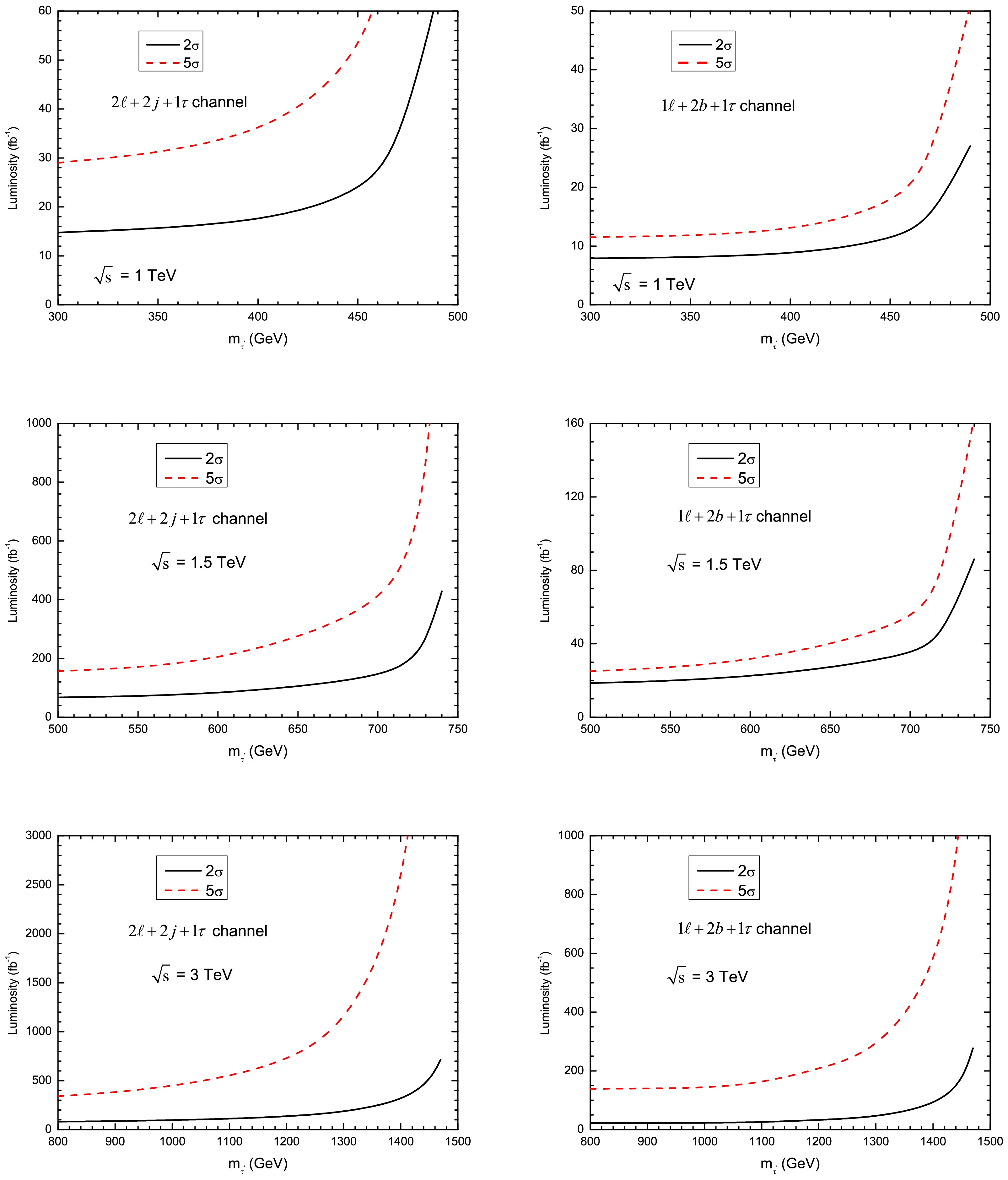 discovery prospects are obtained assuming an integrated luminosity of 5 ab−1.