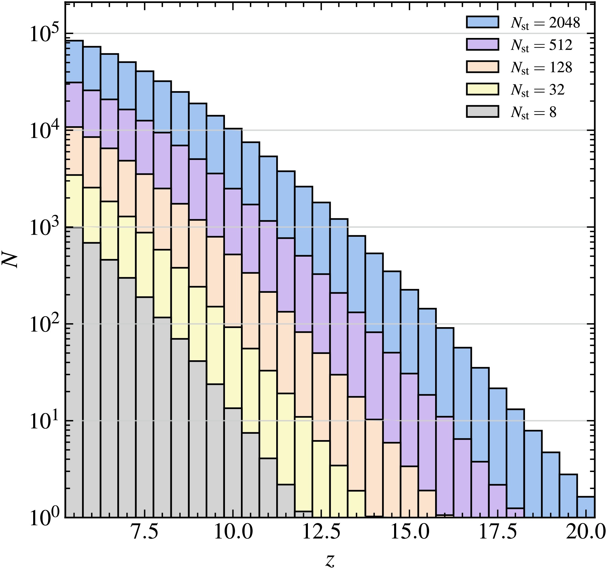 , while SKA-like arrays (\begin{document}$ N_{\mathrm{st}} = 512 $\end{document} ![]()