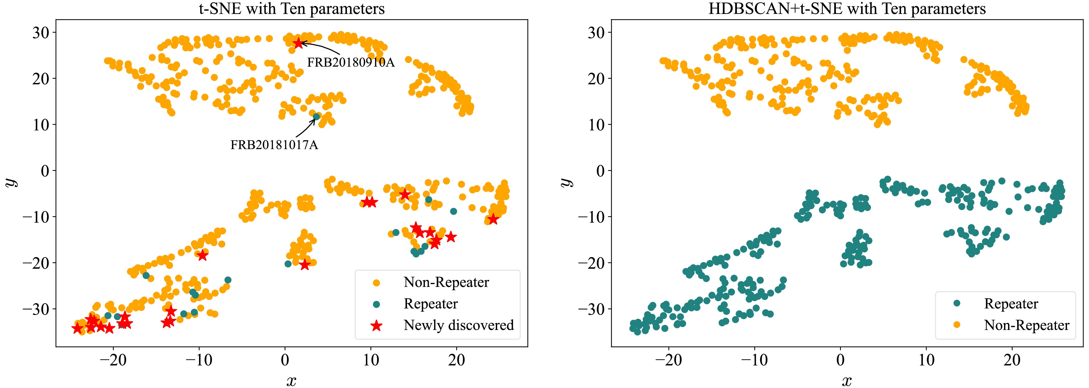 Fast radio bursts (FRBs) are short-duration and energetic radio transients of unknown origin. Observationally, they are commonly categorized into repeaters and non-repeaters. However, this binary classification may be influenced by observational limitations such as sensitivity and time coverage of telescopes. In this study, we employ unsupervised machine learning techniques to re-examine the CHIME/FRB catalog, with the goal of identifying intrinsic groupings in the FRB population without relying on preassigned labels. Using t-distributed stochastic neighbor embedding (t-SNE) for dimensionality reduction and hierarchical density-based spatial clustering of applications with noise (HDBSCAN) for clustering, we find that the FRB sample naturally separates into two major clusters. One cluster contains nearly all known repeaters but is contaminated by some apparently non-repeaters, while the other cluster is dominated by non-repeaters. This suggests that certain FRBs previously labeled as non-repeaters may share intrinsic similarities with repeaters. Mutual information analysis reveals that rest-frame frequency width and peak frequency are the most informative features governing the clustering structure. Even when reducing the input space to just these two features, the classification remains robust.