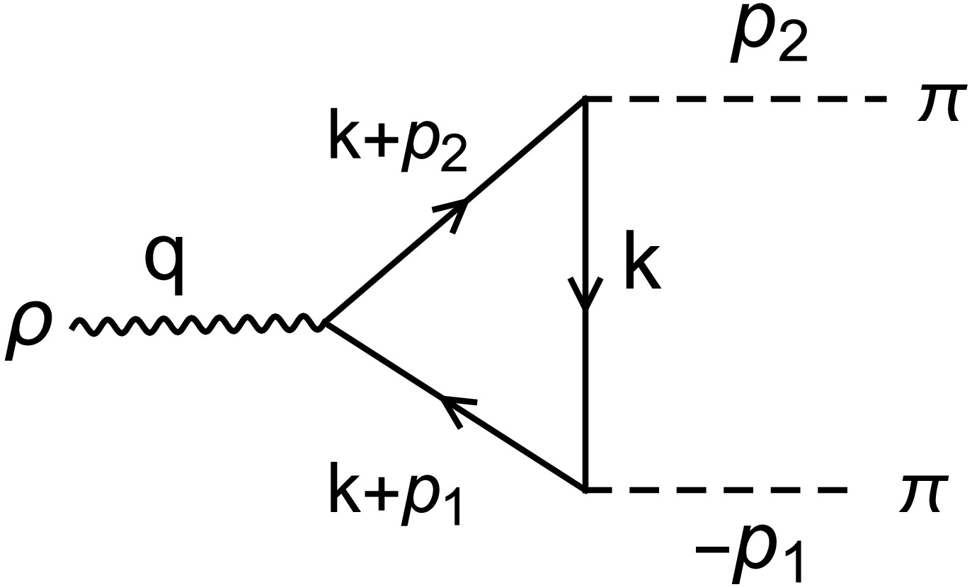 This paper presents novel framework for analyzing unstable composite particles using Green's functions and dispersion relations. As an illustrative example, we explore the ρ vector meson decay process\begin{document}$\rho\to\pi\pi$\end{document} within the Nambu–Jona-Lasinio (NJL) model. This approach addresses a key limitation of the four-quark interaction description, which adequately describes two-quark bound states but fails to describe decay processes. The Bethe-Salpeter (BS) wave function of the ρ meson exhibits time evolution that leads to the physical mass M incorporating a correction \begin{document}$\Delta M $\end{document} . This correction depends on the decay width \begin{document}$\Gamma(M)$\end{document} . This work provides crucial insights into the dynamical relationship between resonance masses and their decay properties, addressing a long-standing challenge in hadron physics. The calculated mass and width are in good agreement with the experimental values, demonstrating the effectiveness of this approach for studying unstable hadronic systems beyond conventional bound-state approximations.