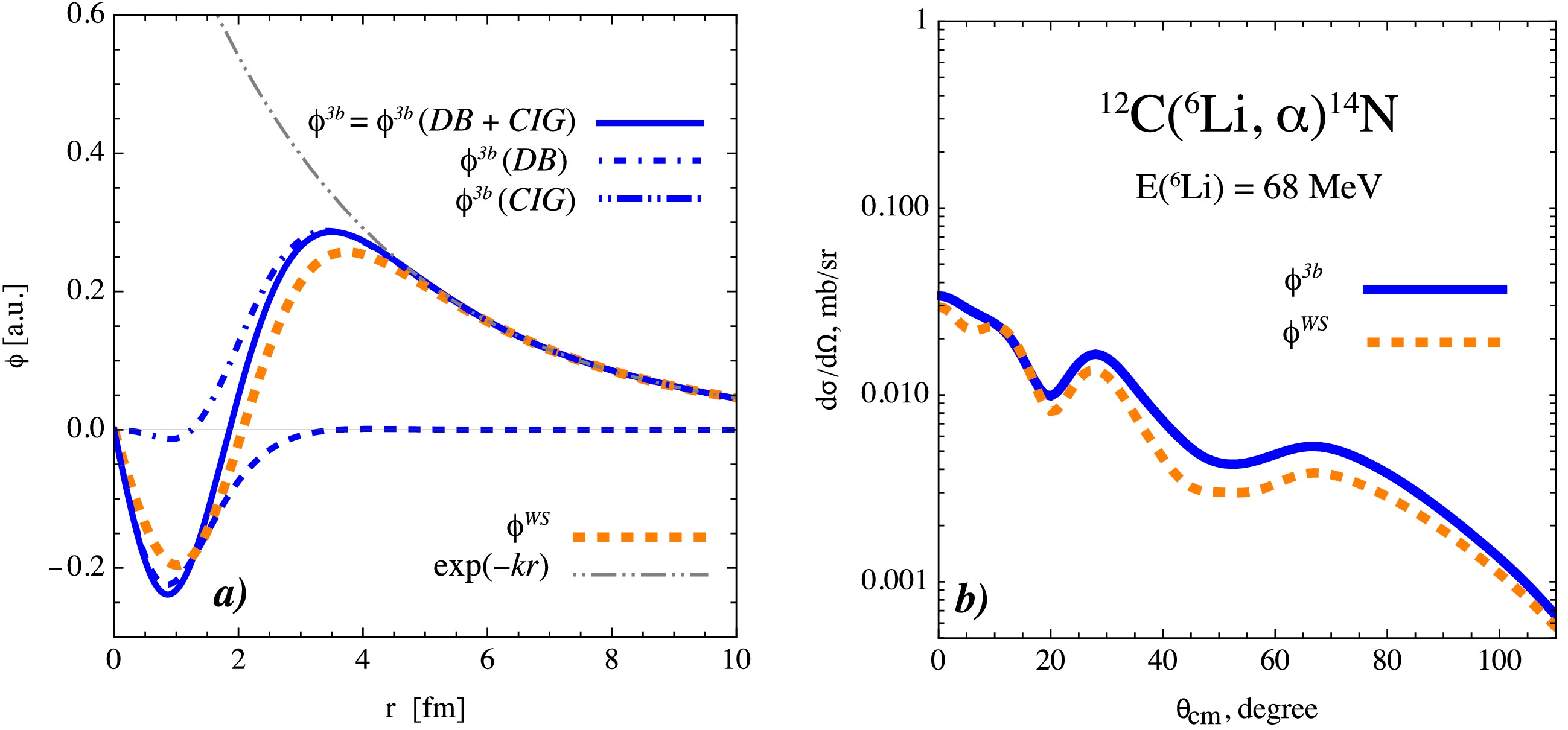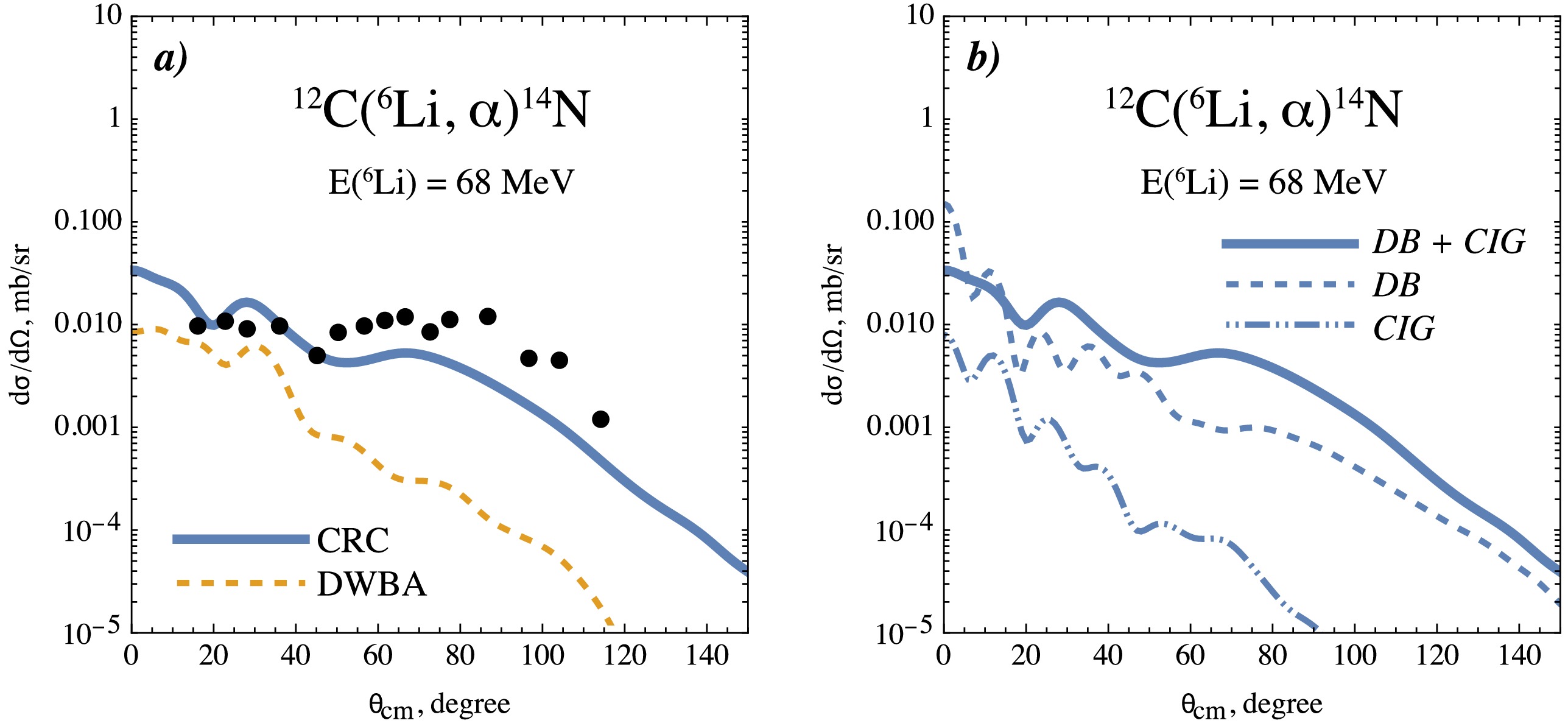 This study presents a combined experimental and theoretical investigation of the 6Li + 12C nuclear reaction at a laboratory energy of 68 MeV. The reaction products are identified via the standard\begin{document}$ \Delta E $\end{document} –E technique. Angular distributions are constructed for the elastic, inelastic, and deuteron transfer channels by detecting emitted particles – 6Li and α. Elastic and inelastic scattering of 6Li off 12C are analyzed using the optical model and coupled channels approaches, with the interaction described by a double-folding potential. This potential is calculated based on the three-body wave function of 6Li. Pronounced coupled-channel effects that modify the potential and allow accurate reproduction of the experimental cross sections are observed. The resulting polarized potentials provide a more precise description of the initial-state interaction for further reaction modeling. The deuteron transfer channel, 12C(6Li, α)14N, is studied using the coupled reaction channels method. The coupling between the transfer and elastic channels is implemented using the three-body wave function of 6Li. As an alternative, a regular wave function constructed with a phenomenological Woods–Saxon potential is also employed. Comparison between the calculated differential cross sections and experimental data reveals a more complex and nuanced reaction mechanism, which supports the cluster structure of 6Li.
