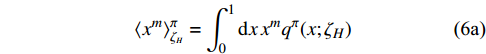 $ \langle x^{m_{\rm o}}\rangle_{\zeta_H}^{\pi} $ ,$ m_{\rm o} = 2 \bar m +1 $ ,$ \bar m \in \mathbb Z $ , is known once all lower even moments are computed. Consequent identities can be used to validate any numerical method for computing the moments defined by Eq. (6).Every moment defined by Eq. (6) is finite. However, direct calculation of the
