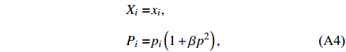 $ X_{i} $ and$ P_{i} $ in terms of the conventional momentum and position operators$ x_{i} $ and$ p_{i} $ ,$ \tag{A4} \begin{aligned}[b] X_{i} =& x_{i},\\ P_{i} =& p_{i}\left( 1+\beta p^{2}\right) , \end{aligned} $