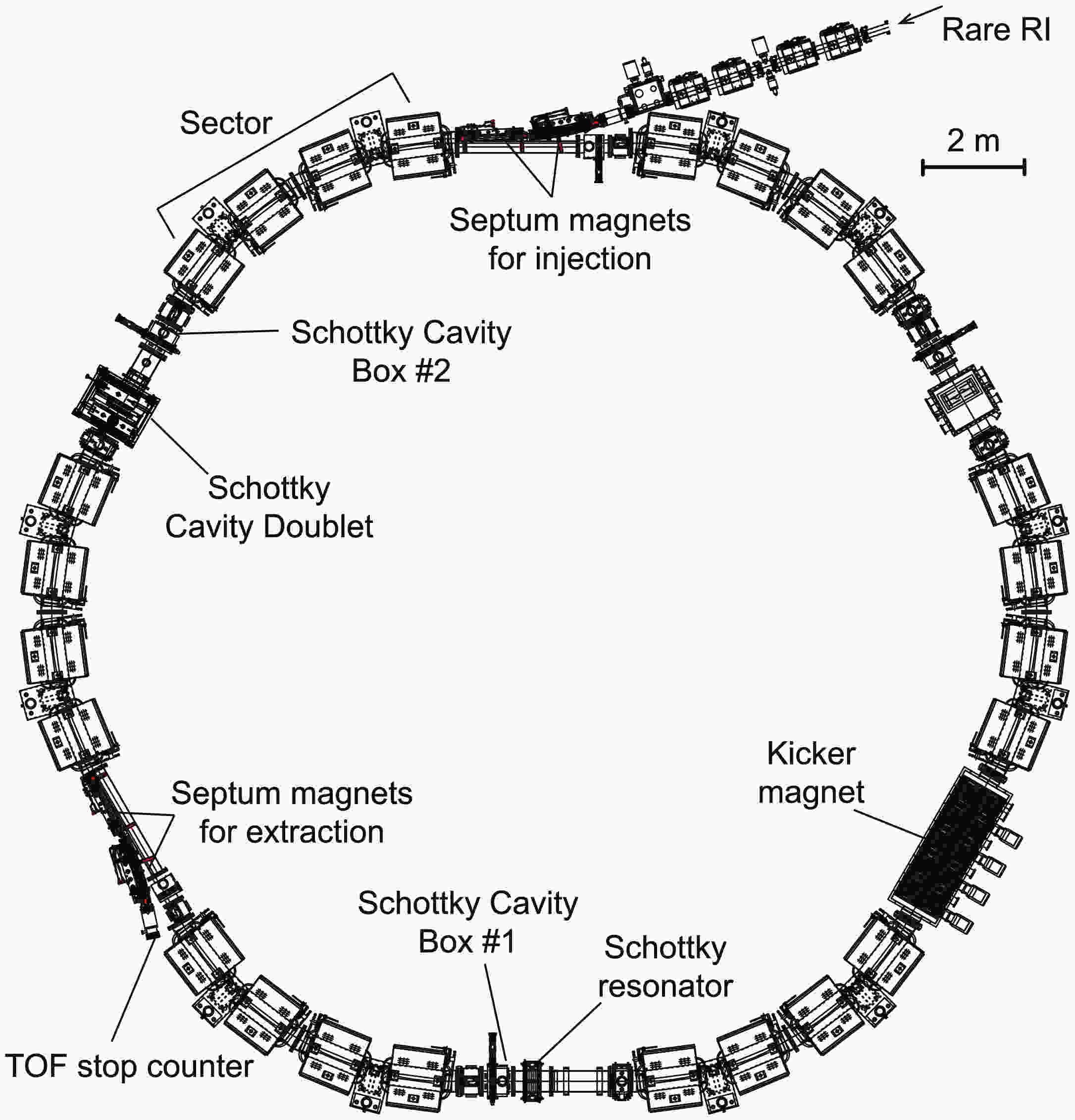 The resonant cavity-type Schottky detector for heavy ions was originally developed at GSI [124]. Compared with the existing capacitive-type pickups at the ESR, the resonant Schottky detector has increased the signal-to-noise ratio by an order of magnitude, enabling fast measurements within a millisecond range [125].