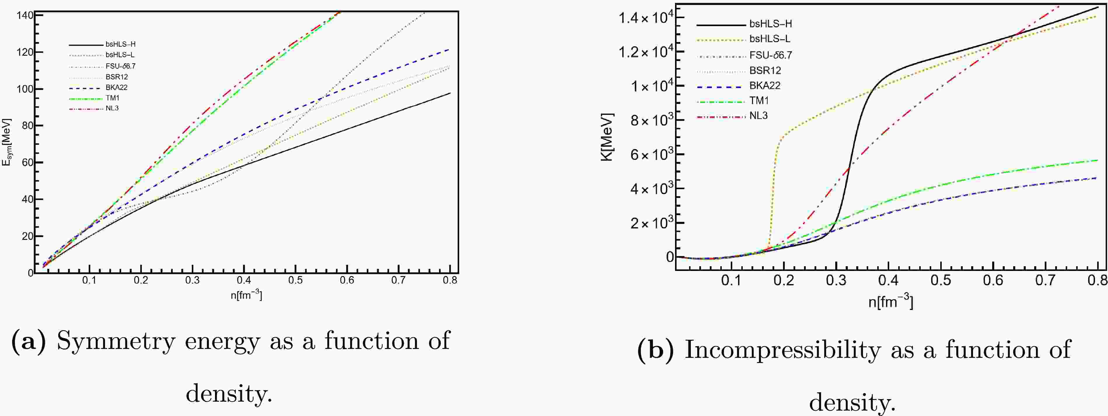 $0.01\ \rm fm^{-3}$ [76].Empirical [43] bsHLS-L bsHLS-H TM1 NL3 FSU- $\delta6.7$