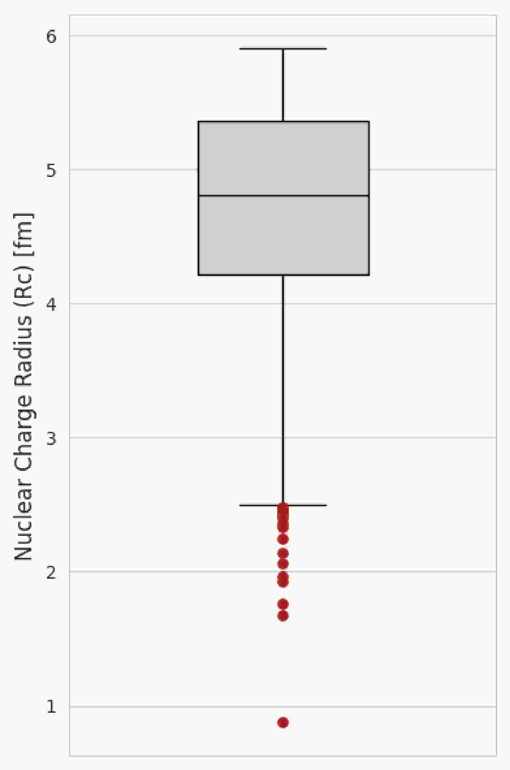 Sr.# A N Z $ R_c $ /fm1 1 0 1 0.8783 2 2 1 1 2.1421 3 3 2 1 1.7591 4 3 1 2 1.9661 5 4 2 2 1.6755 6 6 4 2 2.0660 7 8 6 2 1.9239 8 7 4 3 2.4440 9 8 5 3 2.3390 10 9 6 3 2.2450 11 11 8 3 2.4820 12 10 6 4 2.3612 13 11 7 4 2.4669 14 10 5 5 2.4277 15 11 6 5 2.4060 16 12 6 6 2.4702 17 13 7 6 2.4614 Table 1. Nuclides flagged as outliers by Tukey’s 1.5 × IQR rule on