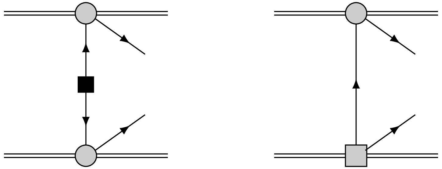 $ V-A $ ) hadronic currents or the right-handed ($ V+A $ ) hadronic currents, with$ \omega=\sqrt{{\boldsymbol{q}}^2+m^2_j} $ the energy of the intermediate neutrino. The above equation are obtained by performing integration over the time coordinates$ x_0 $ ,$ y_0 $ as well as the time component of the 4-momentum of intermediate neutrino.Similarly, at the order of