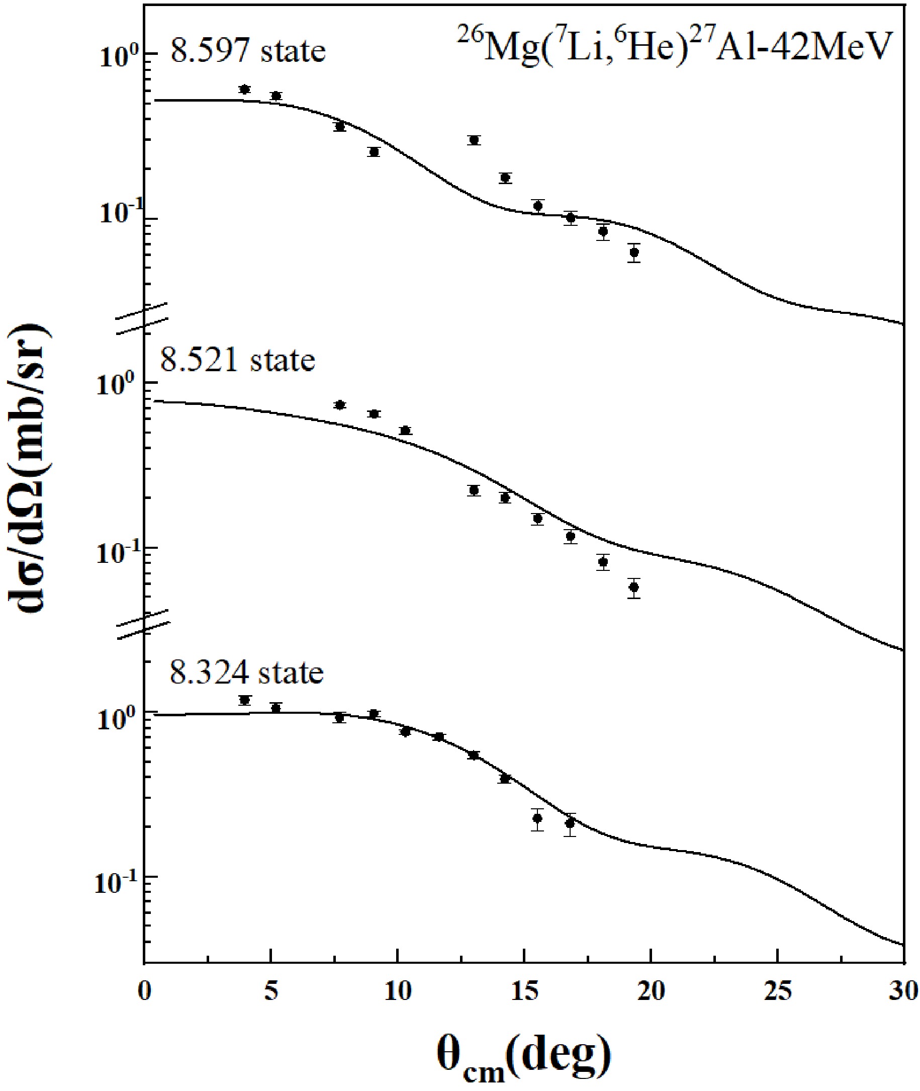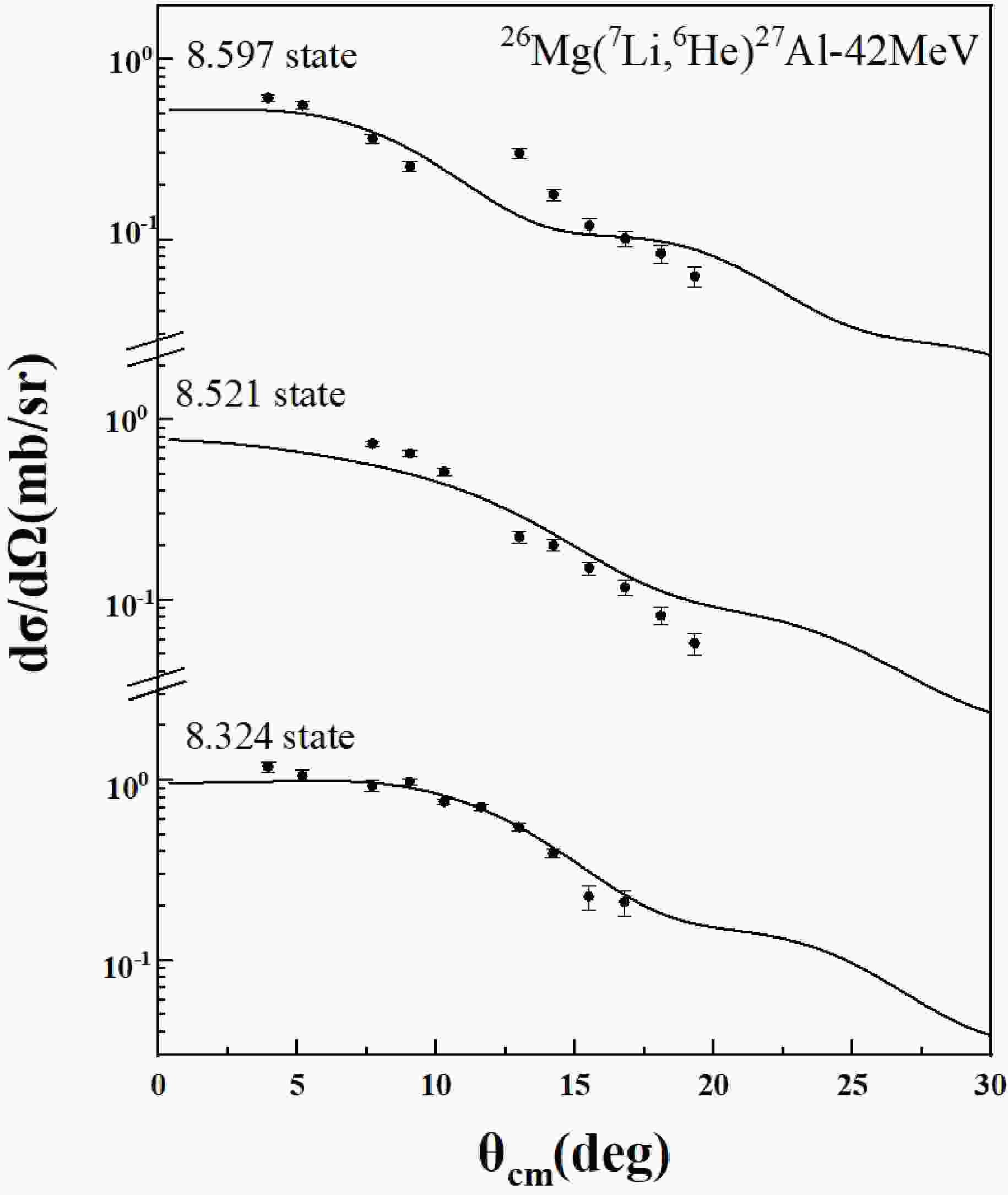 Figure 4. The angular distribution of 26Mg(7Li, 6He)27Al reaction for three different states in 27Al calculated using the DWBA program FRESCO. The selected optical potential and calculation methods are described in the article.