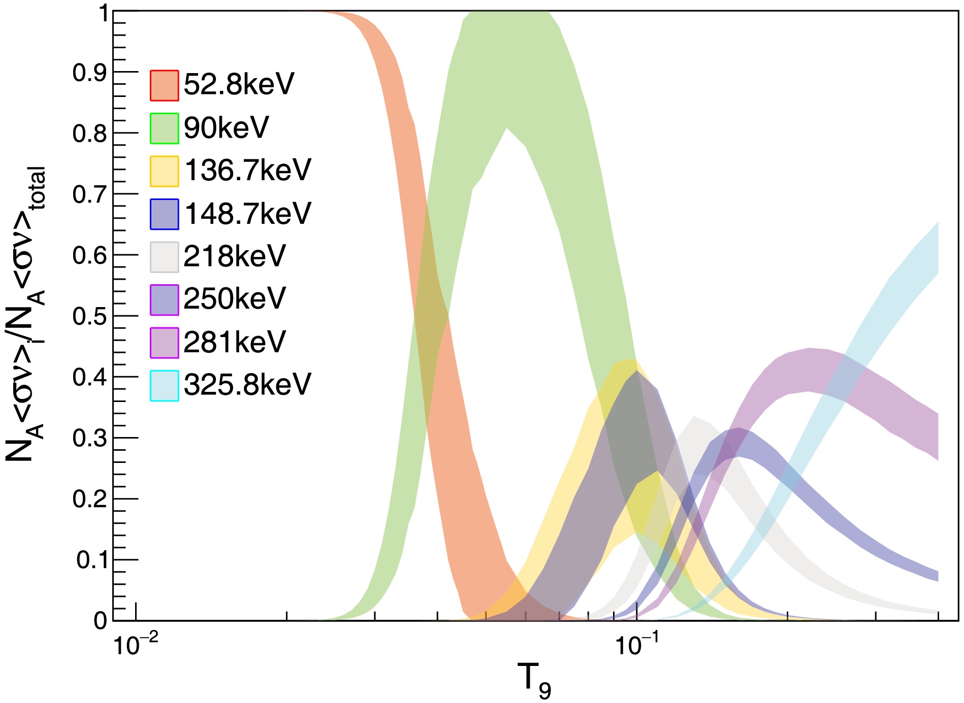 Figure 7. The contribution of the main resonances to the total reaction rate in
