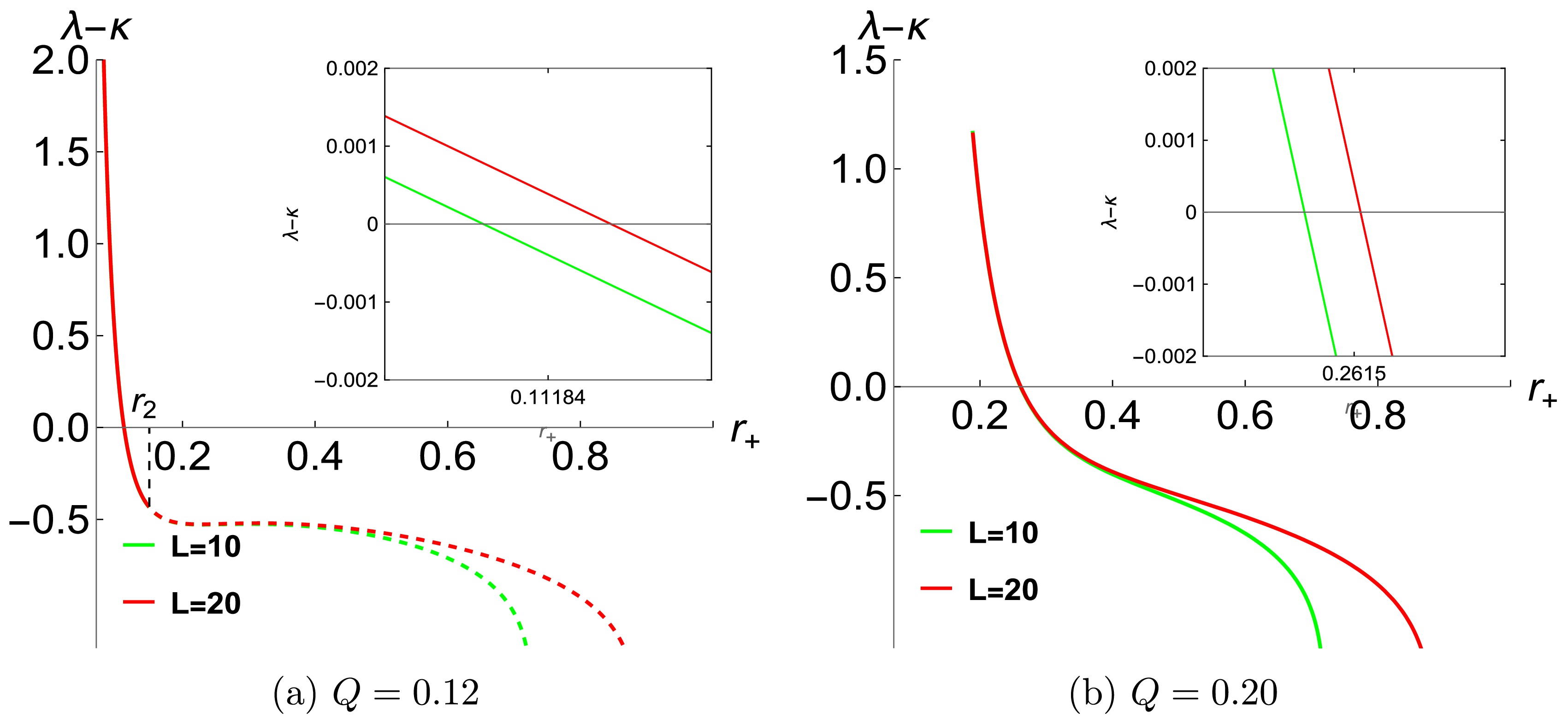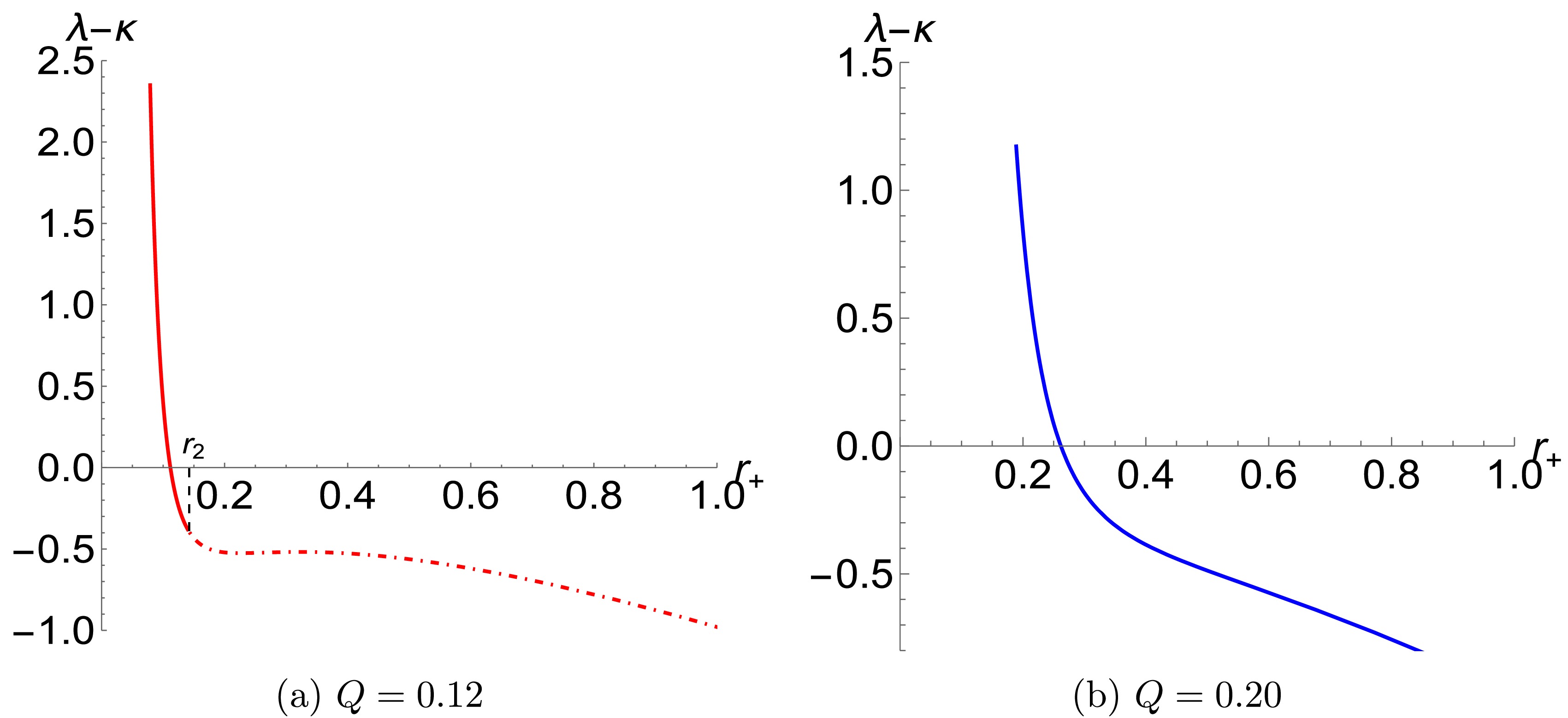 $ \lambda(r_{+}) $ in the vicinity of the critical point$ r_{i} $ .$ \lambda(r_+) = \lambda(r_{i}) + \left( \frac{\partial \lambda}{\partial r_+} \right)_{c} (r_+ - r_{i}) + {\cal{O}}(r_{i}) . $