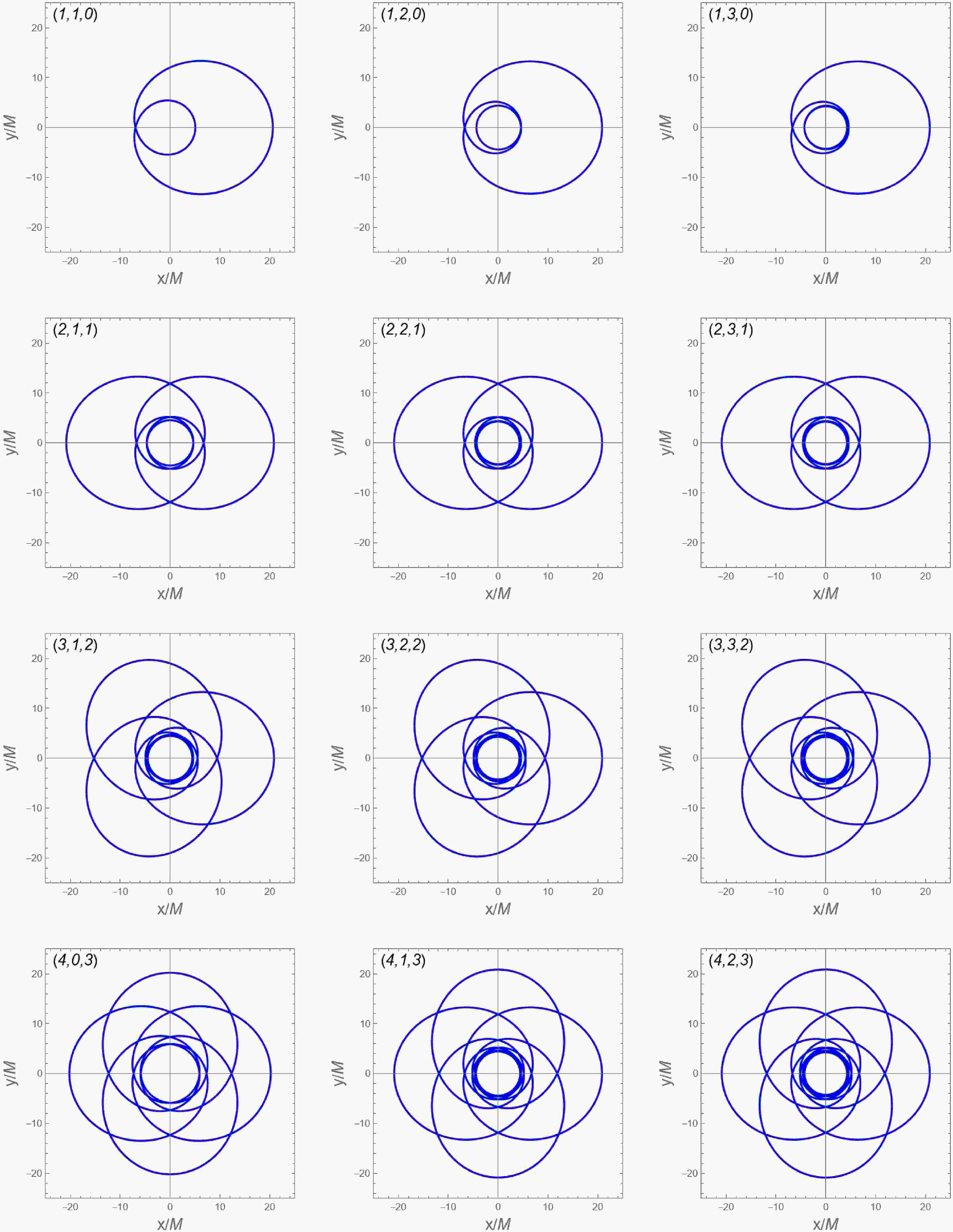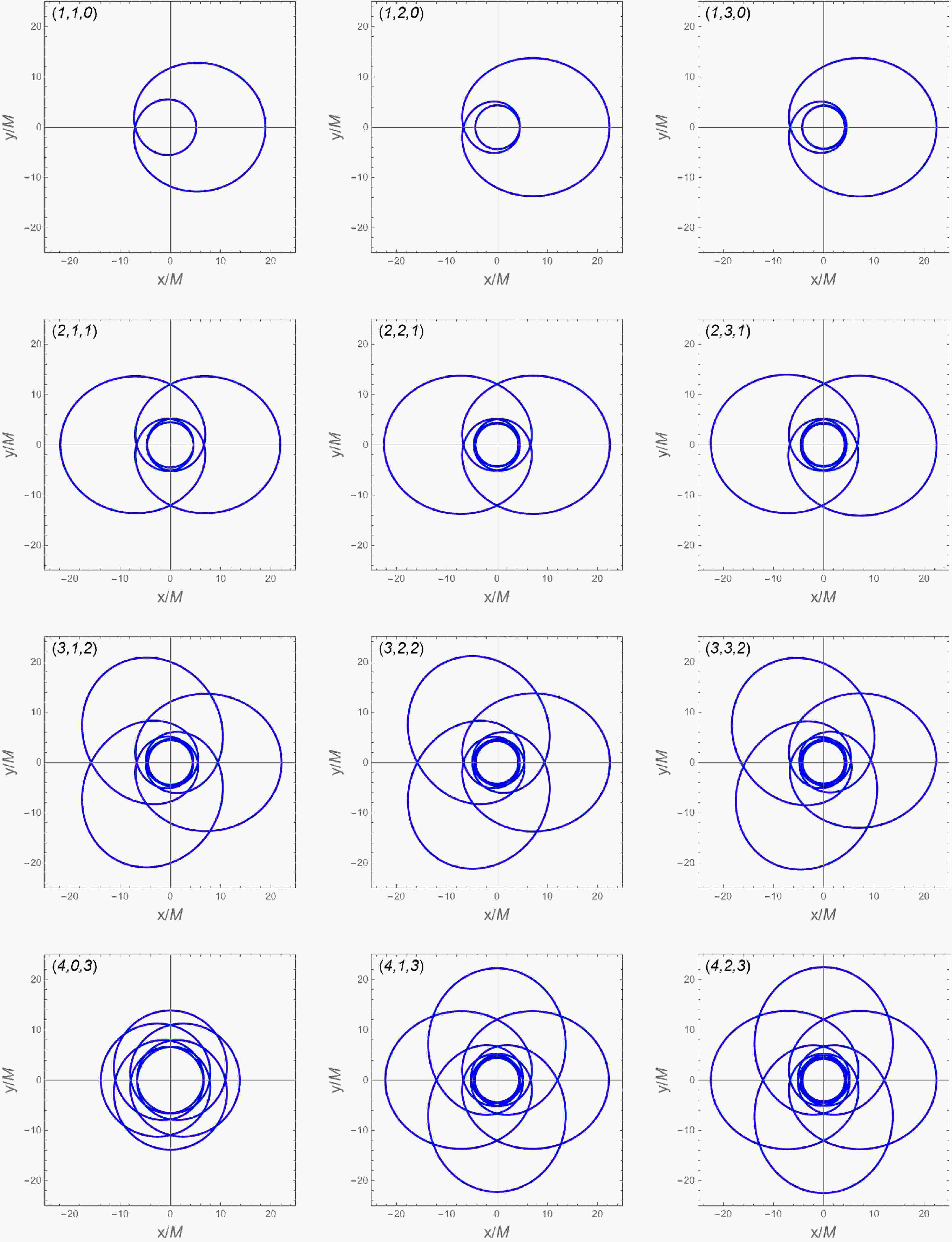 $ \omega_\varphi/\omega_r $ is irrational, it can be approximated by nearby rational values, enabling understanding of generic trajectories through neighboring periodic ones and their gravitational wave signatures [17]. Fundamental orbital frequencies are rationally related, with each orbit indexed by$ (z,w,v) $ and rational parameter$ q \equiv \frac{\omega_\varphi}{\omega_r} - 1 = w + \frac{v}{z}, $
