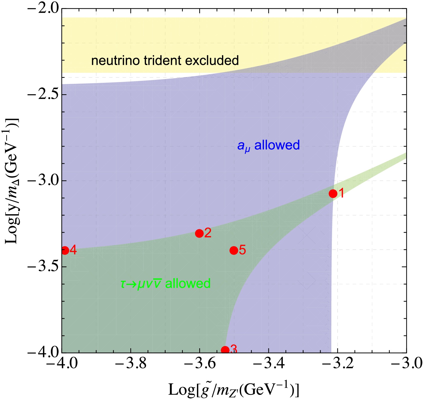$ m_{Z^{\prime}} $ $ \tilde{g} $ $m_{\Delta}/\text{GeV}$ $ Y_{22} $ {$ P_{\mu^+} $,$ P_{\mu^-} $}={0%,0%} {$ P_{\mu^+} $,$ P_{\mu^-} $}={–20%,80%} {$ P_{\mu^+} $,$ P_{\mu^-} $}={80%,–80%}
