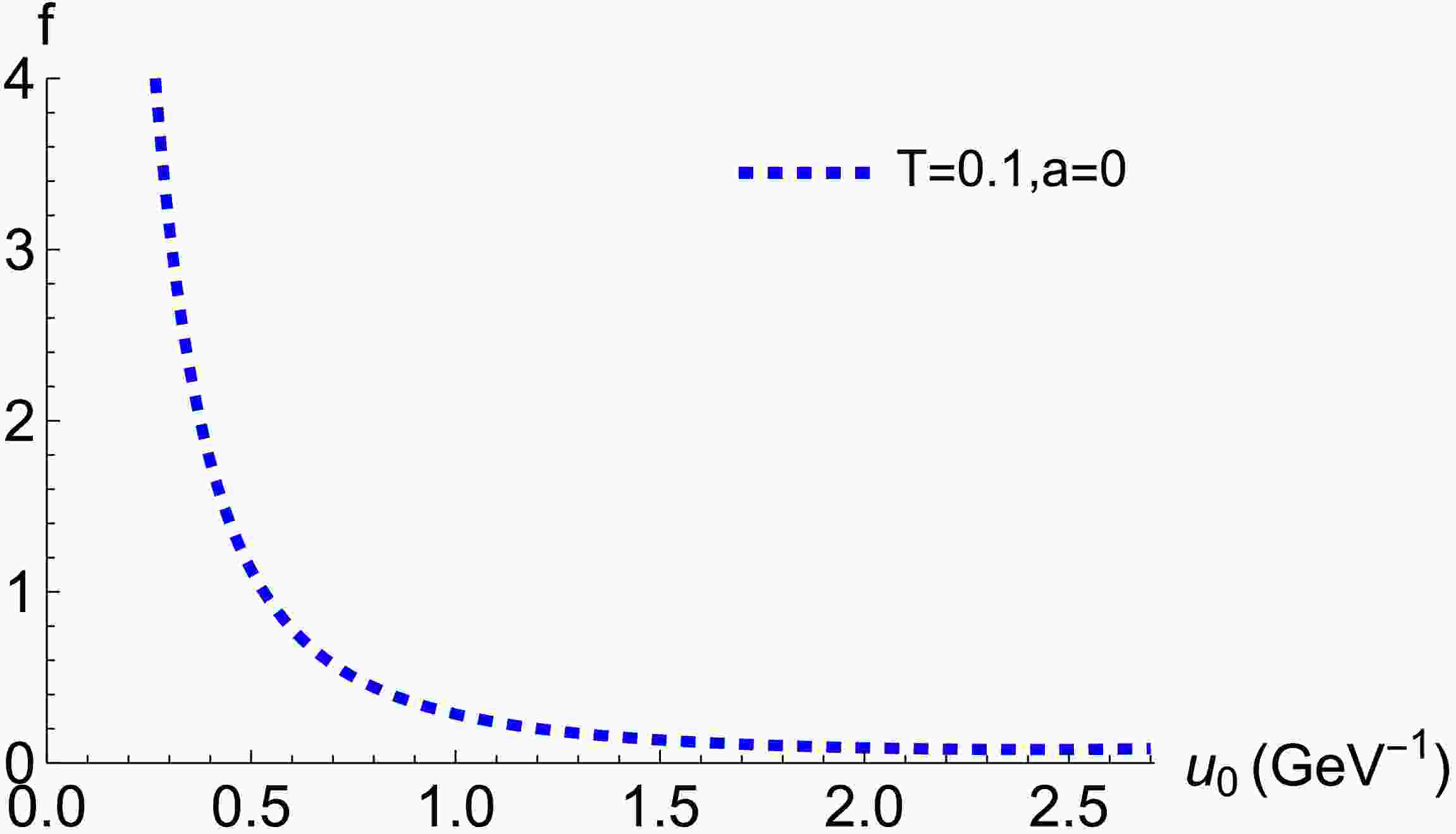 Figure 3.  (color online) Numerical dependence of f on the bulk turning point $ u_0 $ in the isotropic case ($ a = 0 $) at $ T = 0.1\,{\rm{GeV}} $.