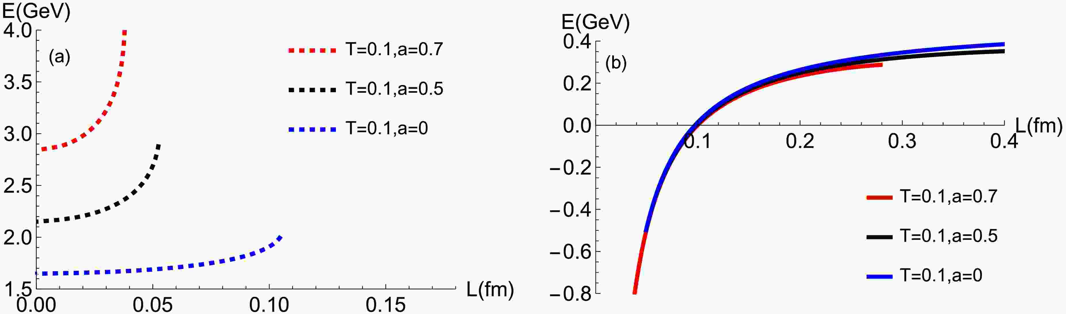 Figure 10.  (color online) Potential energy E as a function of separation L for the $ \Sigma_{u}^{-} $ state at $ T = 0.1\,{\rm{GeV}} $.