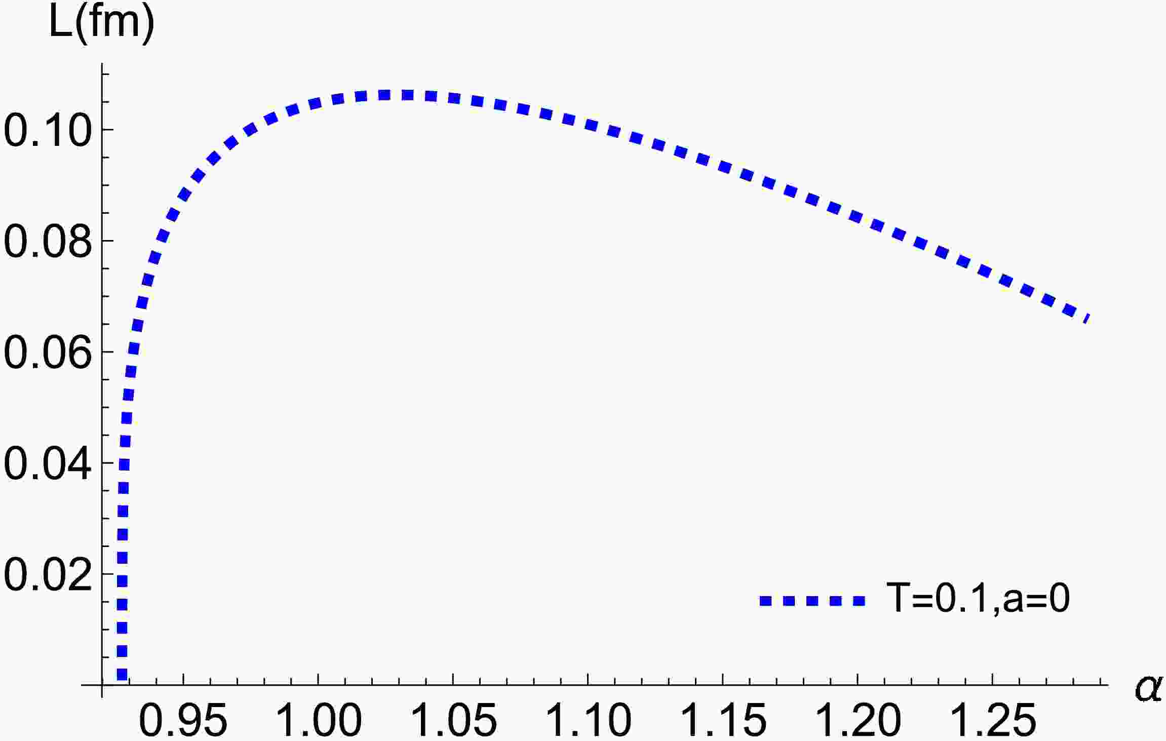 Figure 9.  (color online) The separation distance L as a function of anisotropy a for the $ \Sigma_{u}^{-} $ state at $ T = 0.1\,{\rm{GeV}} $.