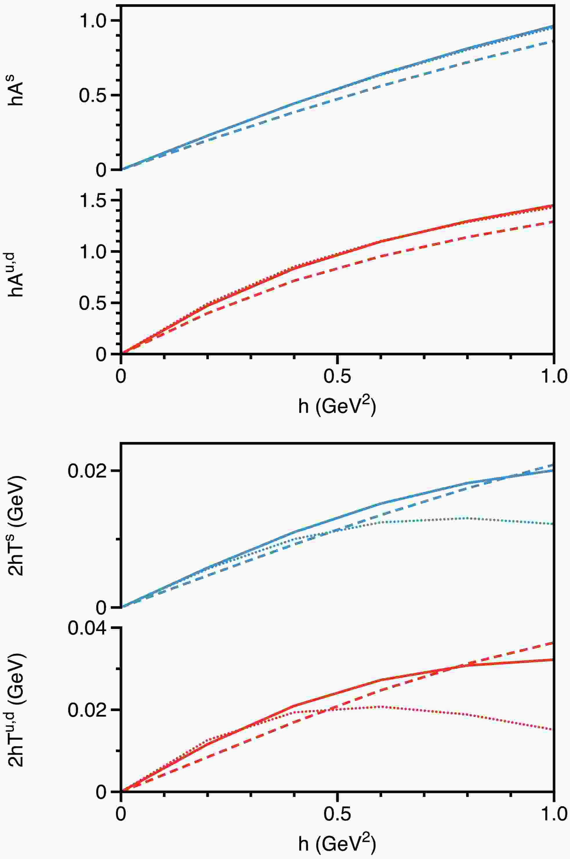 $ h=0 $ ), the dressing functions satisfy:$ \hat{{A}}=\hat{{C}}=\hat{{E}}\,,\quad\quad \hat{{B}} =\hat{{D}}\,, $