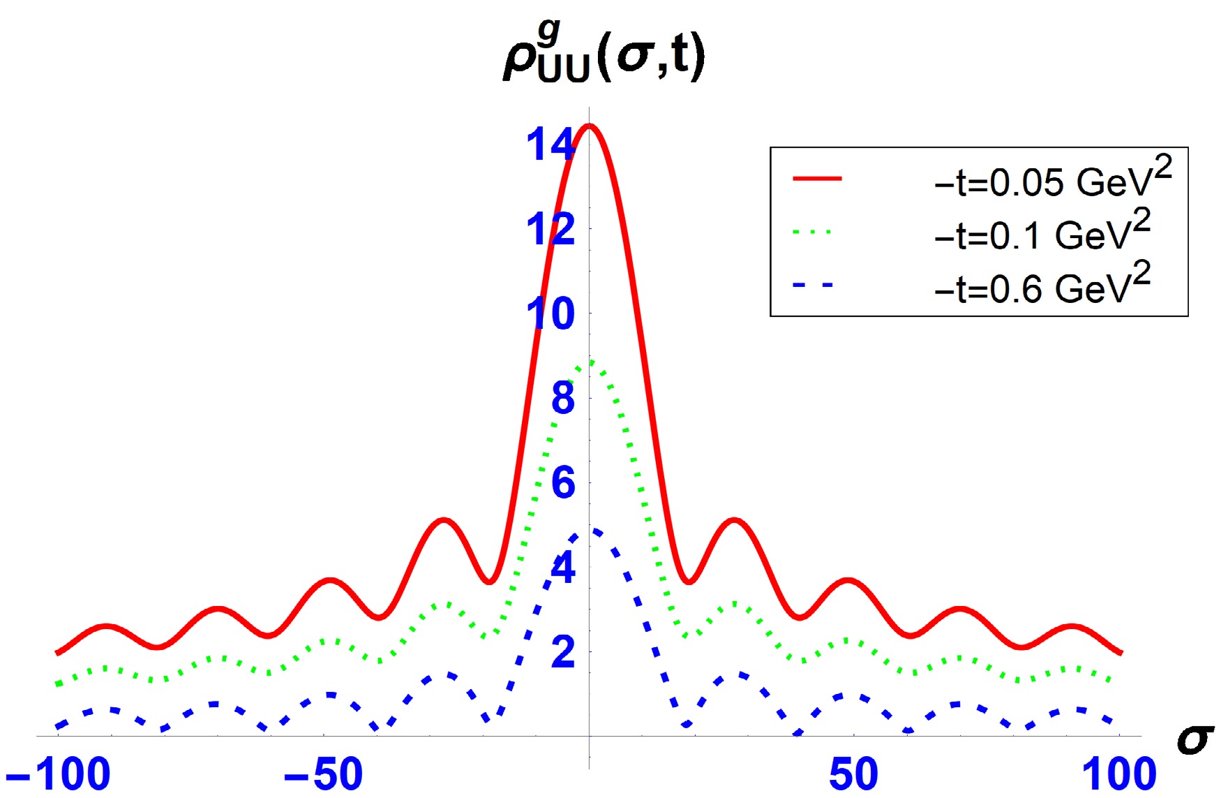 $ \rho^g_{UU} $ for various values of$ -t $ , corresponding to the unpolarized gluon in an unpolarized target.