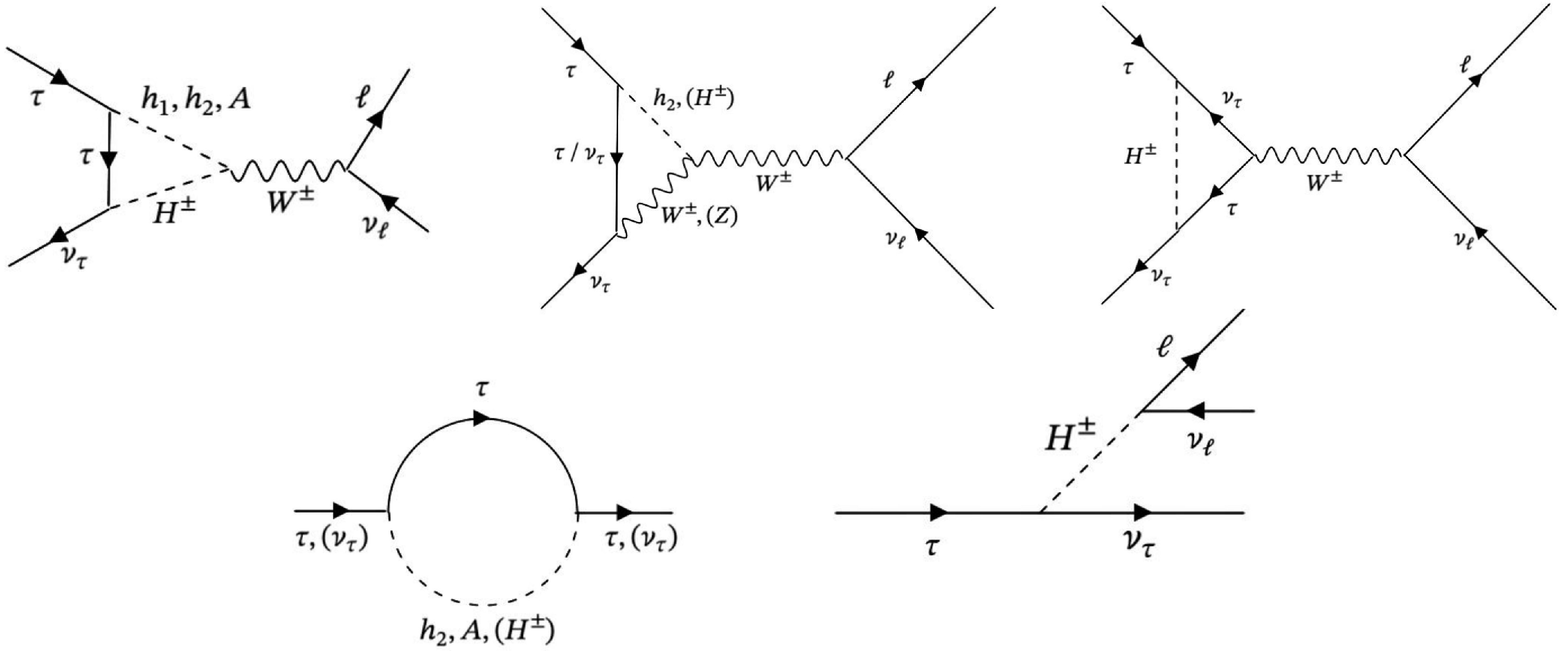 Figure 3. The diagrams illustrating the contributions to LFU from the new Higgs bosons through decays of