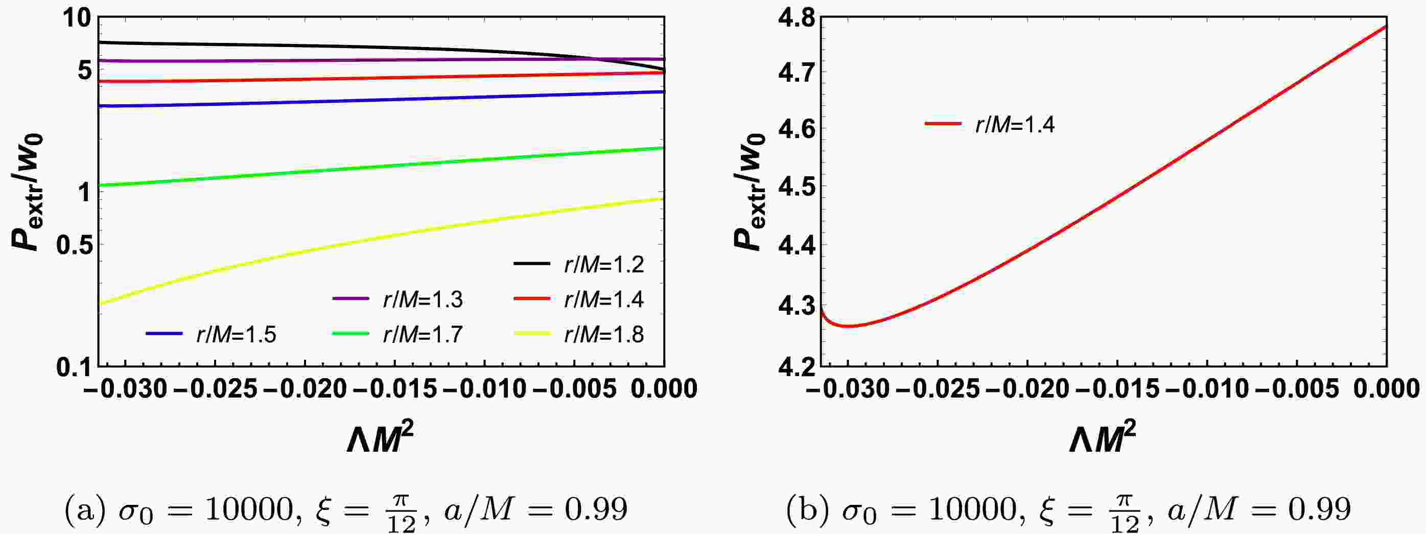 $ P_{{\rm{extr}}}^{{\rm{Kerr}}} $ , we only need to substitute$ \Lambda M^2=0 $ into (30).In Fig. 11, we fix the spin at
